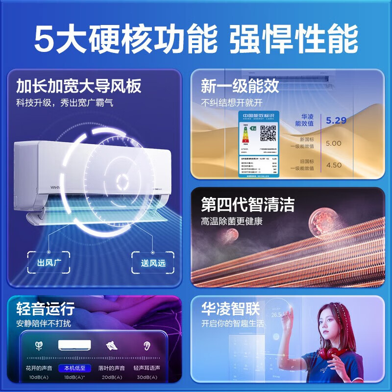 华凌空调 大1.5匹 超一级能效 变频 冷暖 壁挂式卧室 空调挂机 智能家电 以旧换新