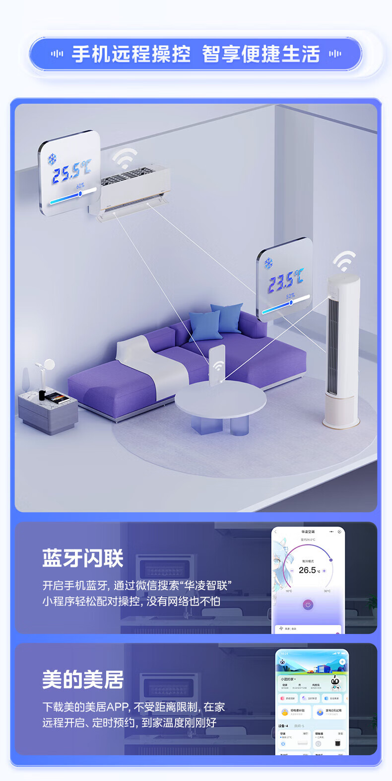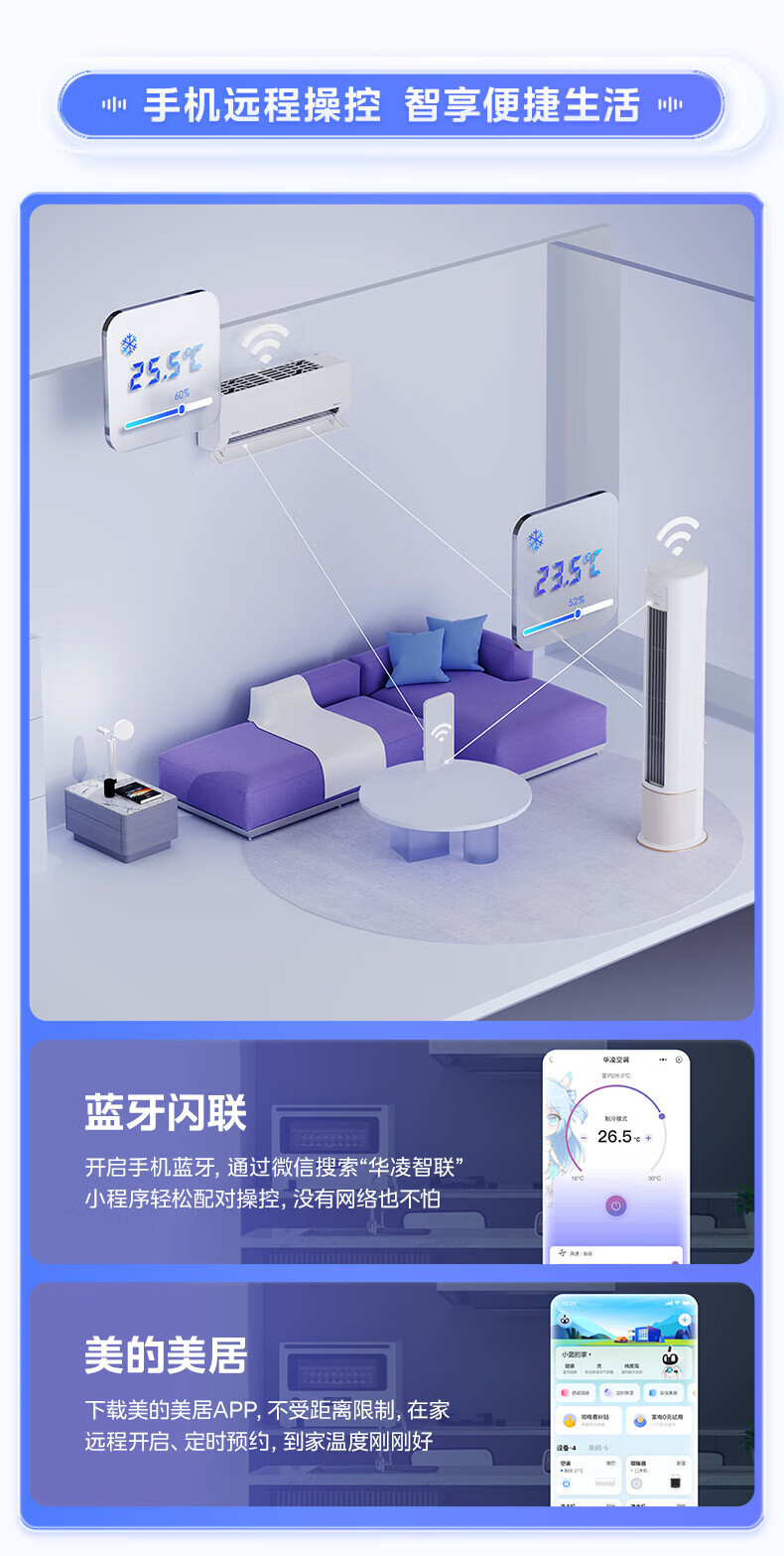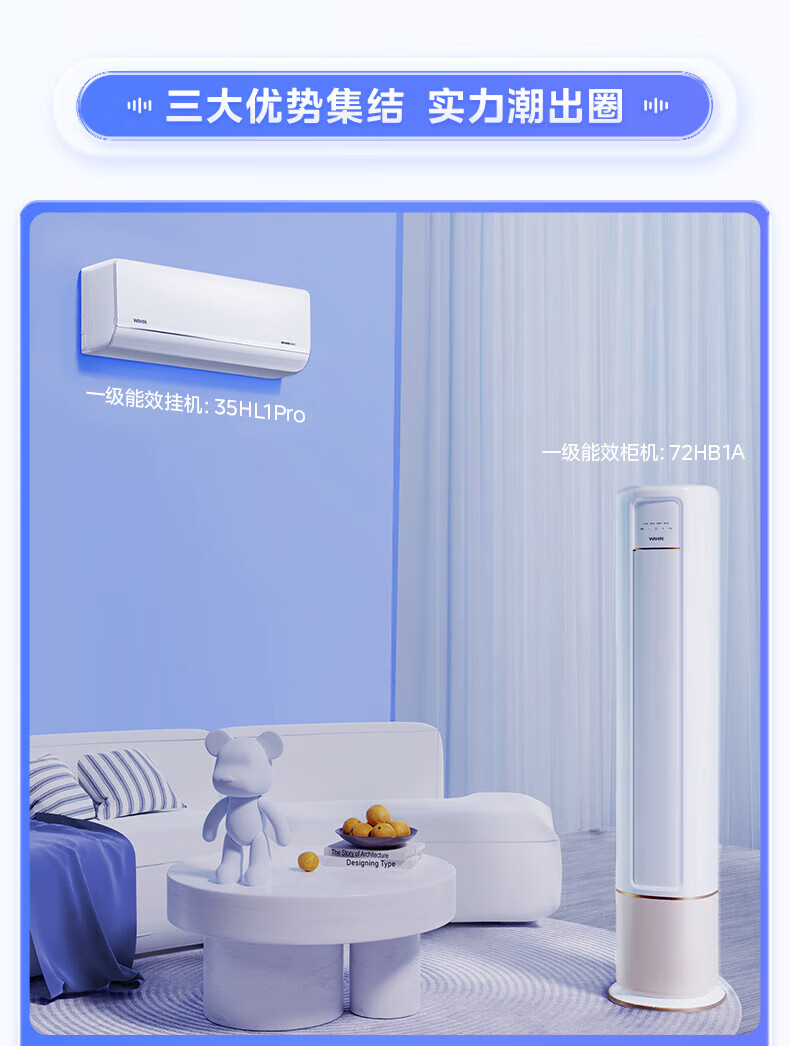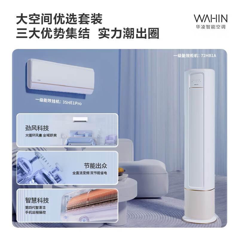 华凌空调 新一级能效 变频冷暖 挂机柜机套装 智能家电 自清洁科技 大风量 两室三室一厅 客厅卧室空调 3匹 一级能效
