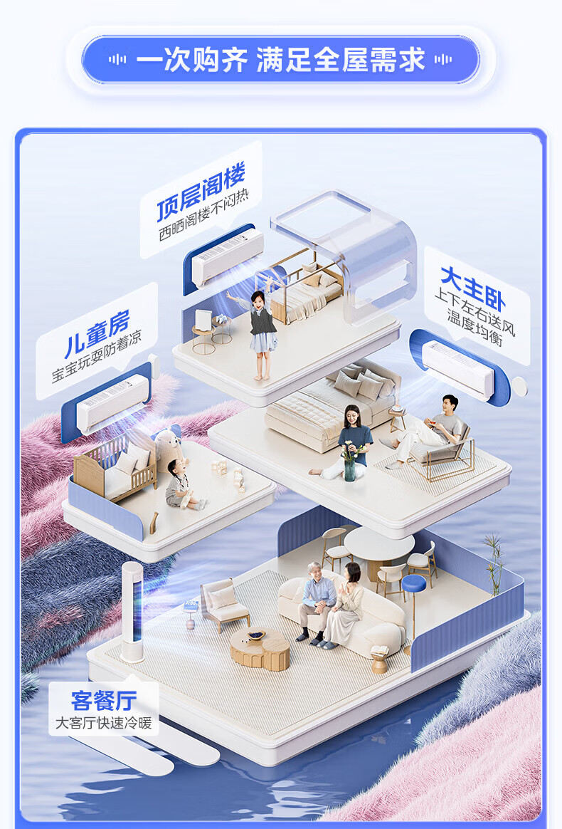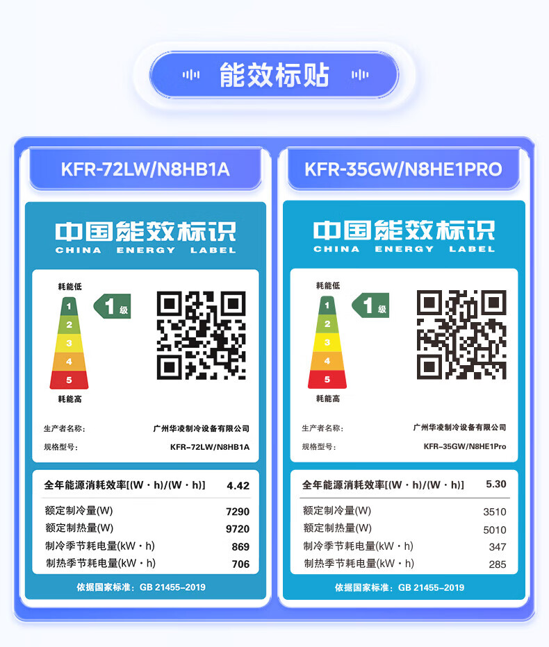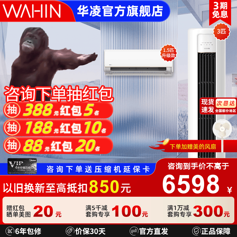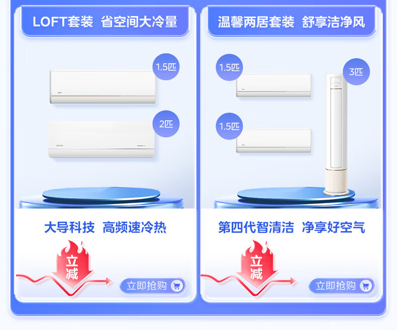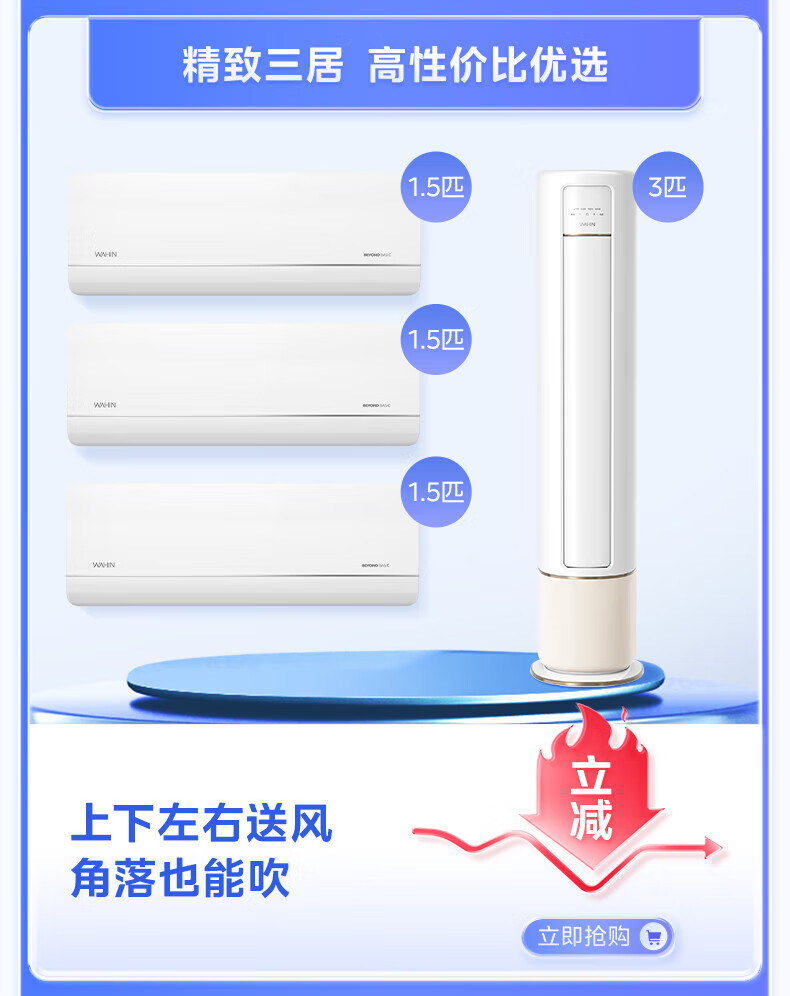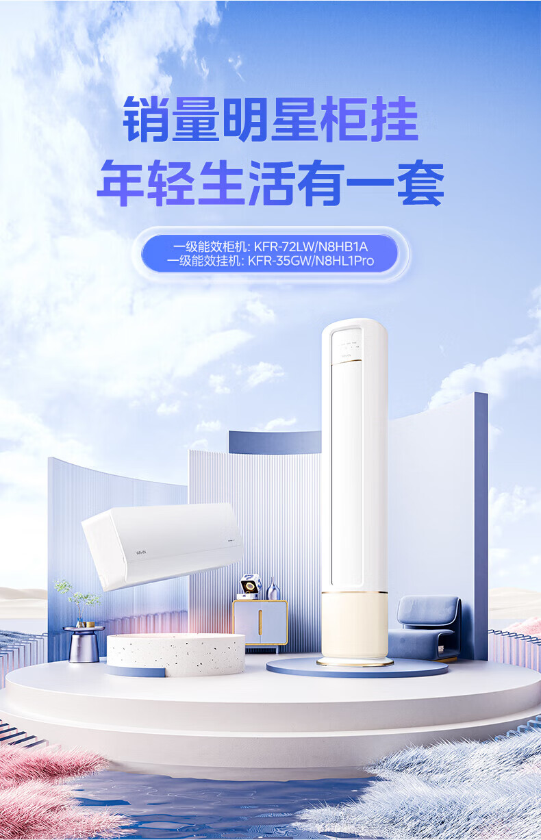 华凌空调 新一级能效 变频冷暖 挂机柜机套装 智能家电 自清洁科技 大风量 两室三室一厅 客厅卧室空调 3匹 一级能效