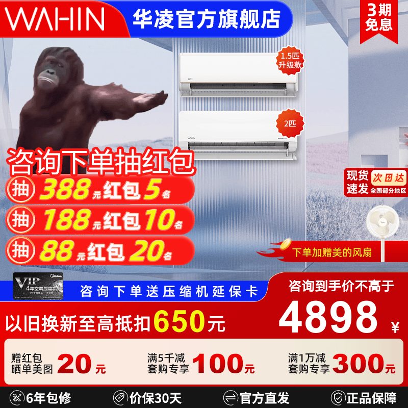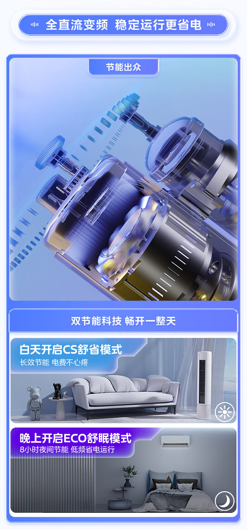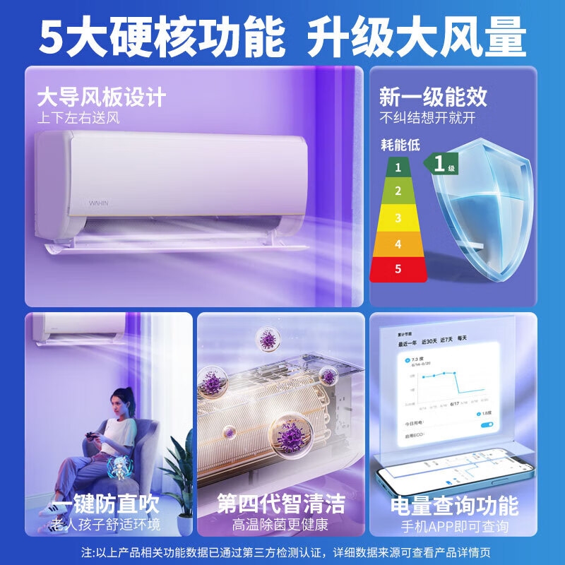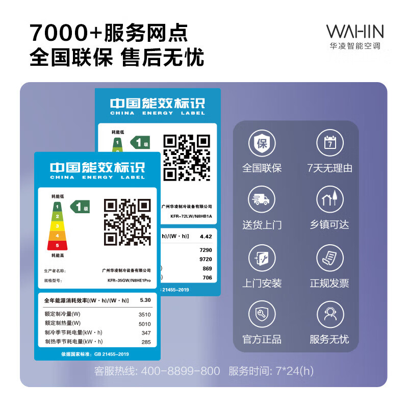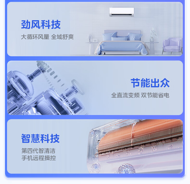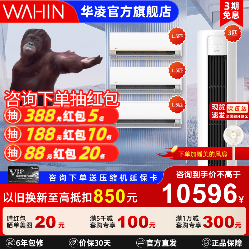 华凌空调 新一级能效 变频冷暖 挂机柜机套装 智能家电 自清洁科技 大风量 两室三室一厅 客厅卧室空调 3匹 一级能效