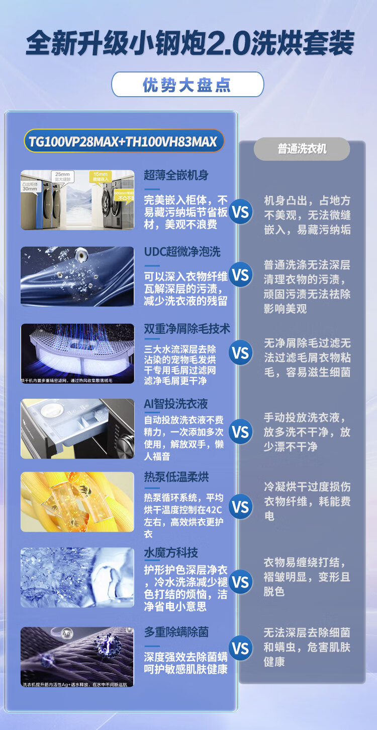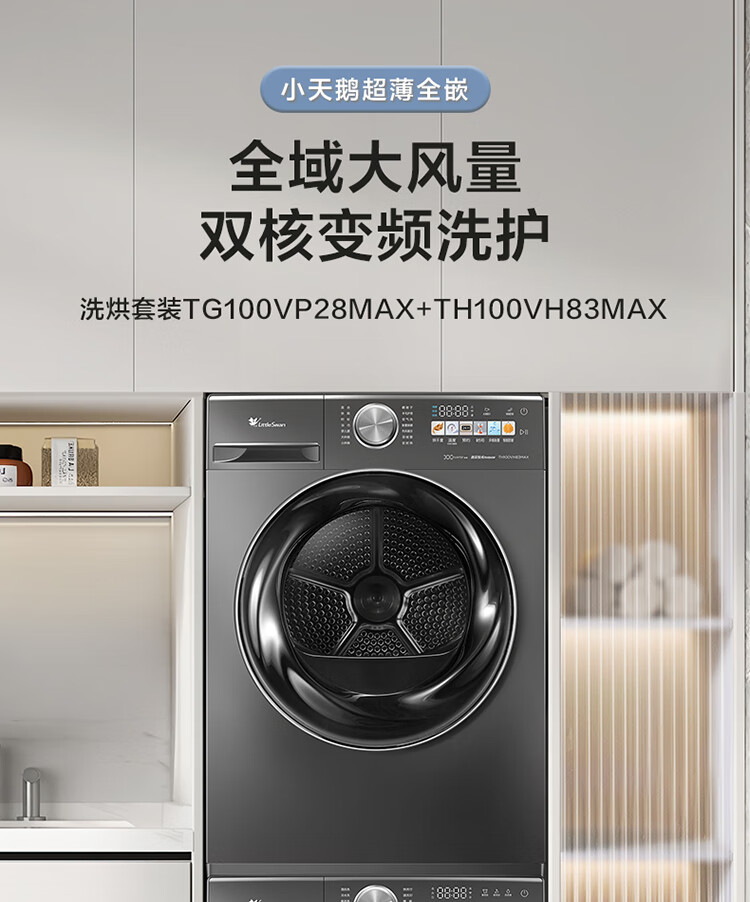 小天鹅(LittleSwan)洗烘套装 10KG滚筒洗衣机+热泵烘干机 除毛絮必备神器双变频超微净泡 【小钢炮2.0】P28MAX+83MAX