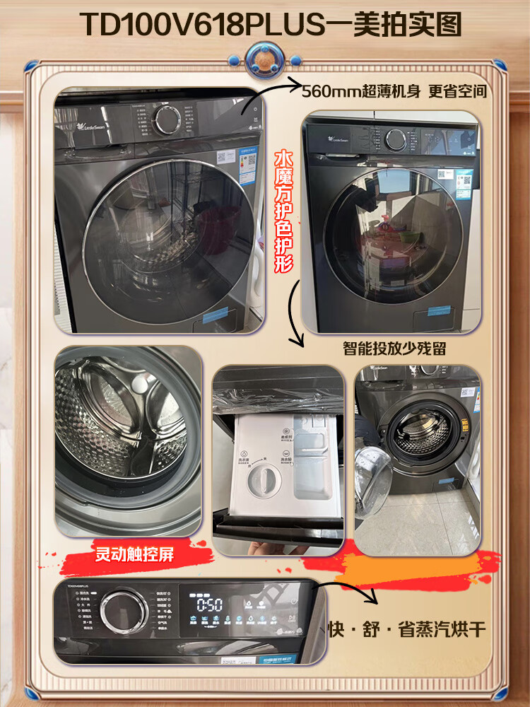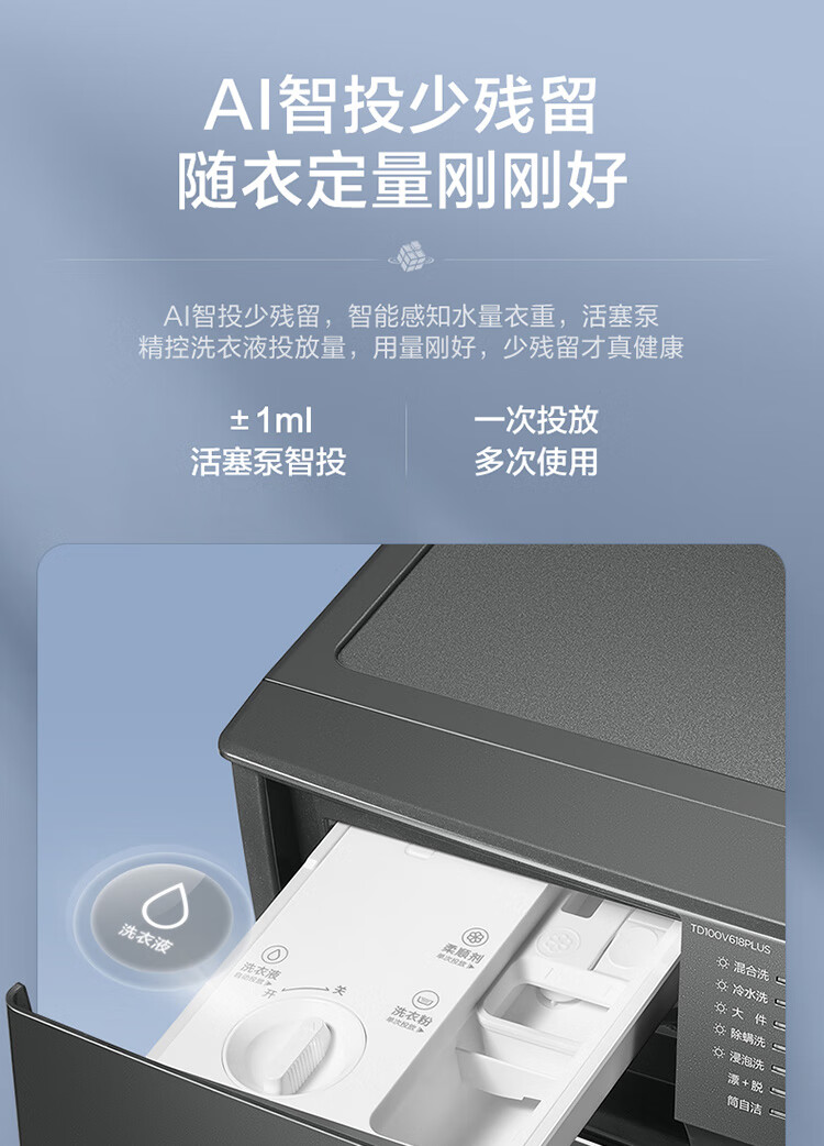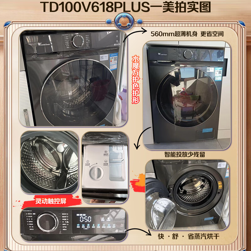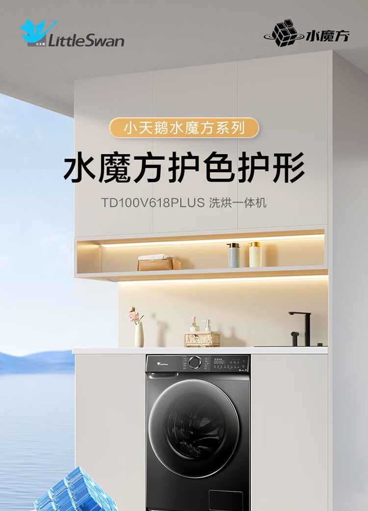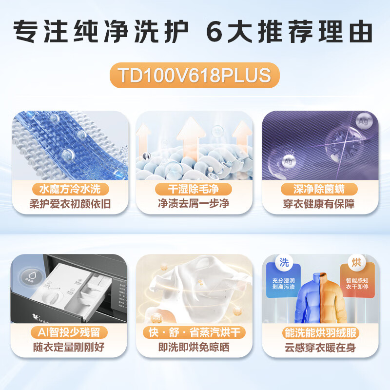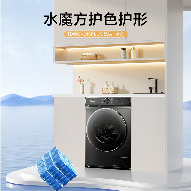 小天鹅(LittleSwan)洗衣机滚筒全自动洗烘一体机10KG大容量 智能投放1.1洗净比水魔方护形护色蒸汽烘干羽绒服洗 TD100V618PLUS