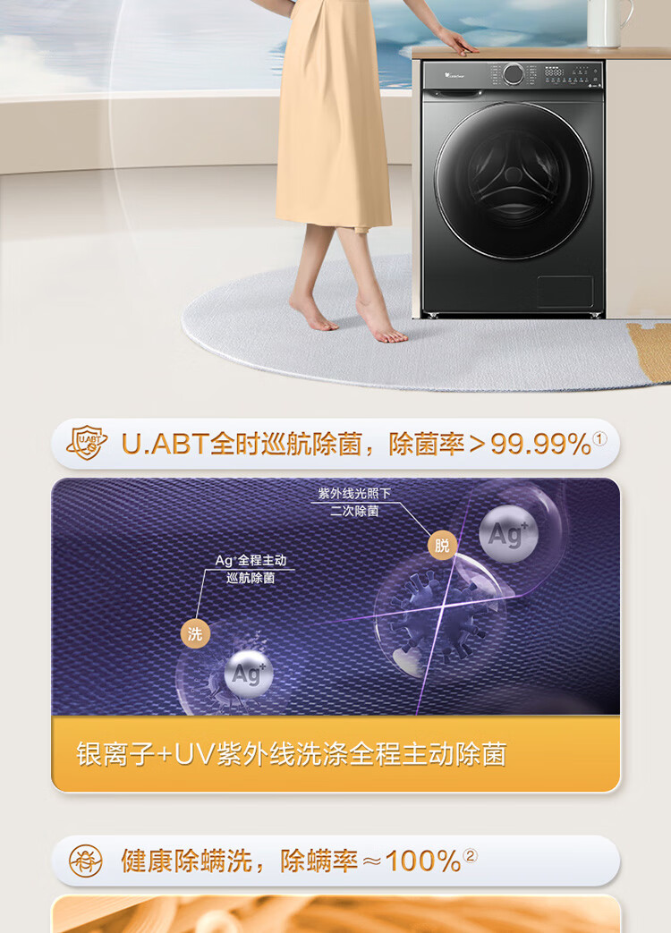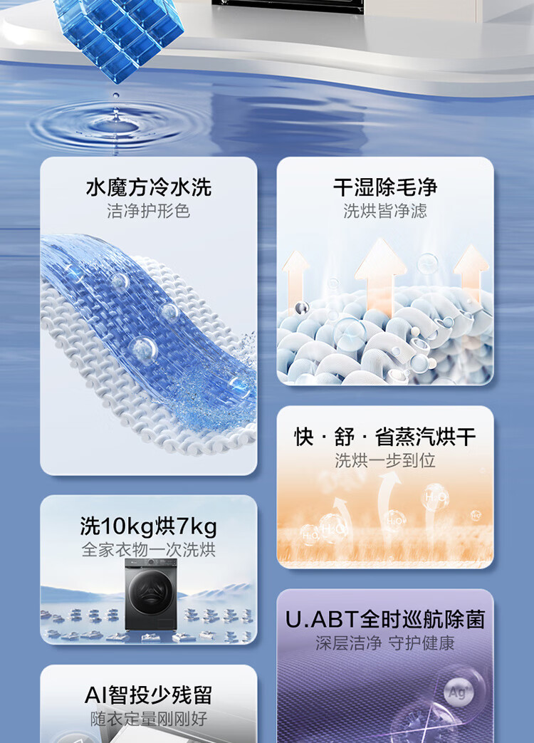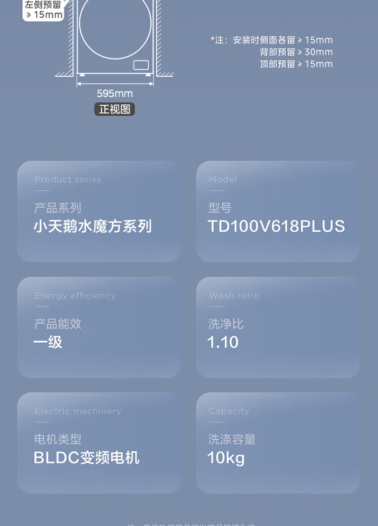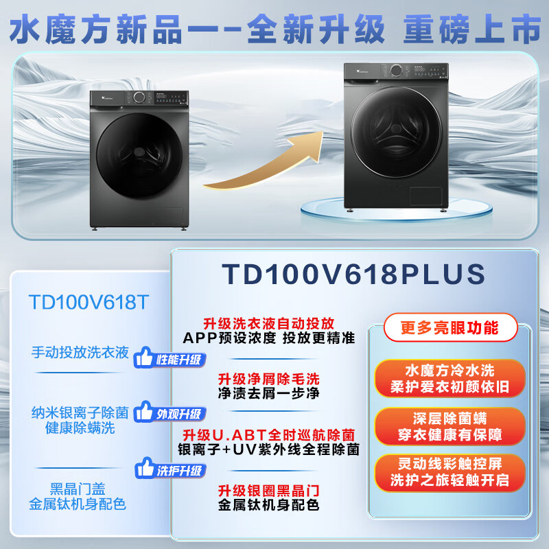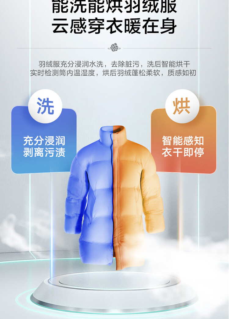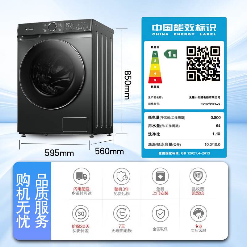 小天鹅(LittleSwan)洗衣机滚筒全自动洗烘一体机10KG大容量 智能投放1.1洗净比水魔方护形护色蒸汽烘干羽绒服洗 TD100V618PLUS