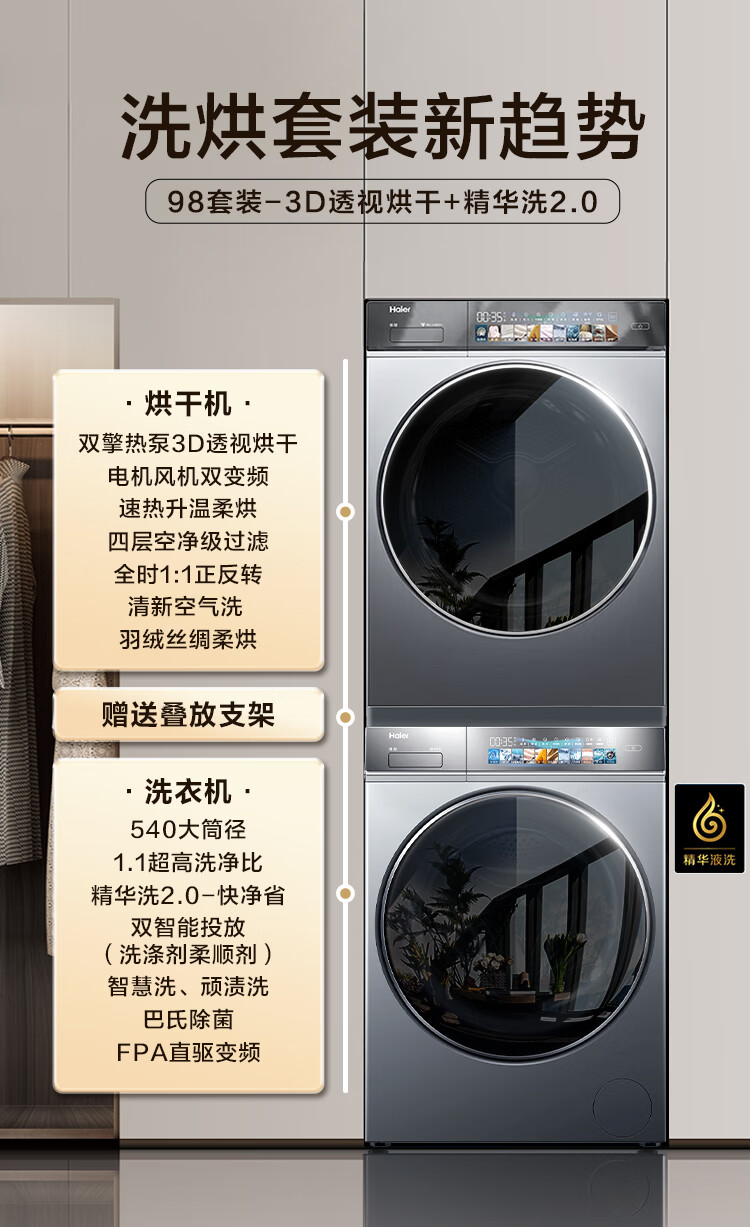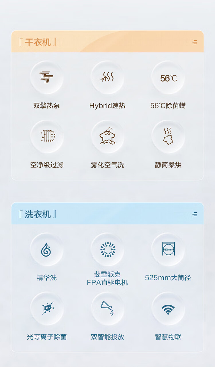 10公斤直驱精华洗洗衣机,10公斤双擎热泵干衣机
