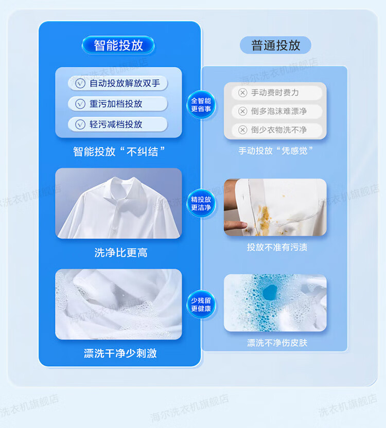 智能投放,电辅加热洗涤,筒自洁,脱水功能,夜间洗,预约功能,智能断电记忆,除菌功能