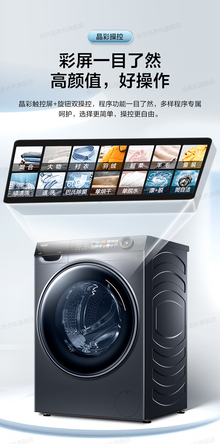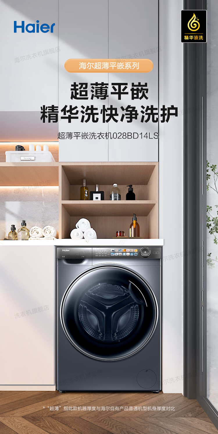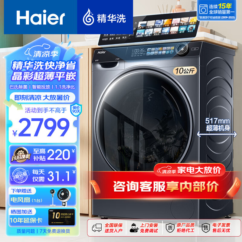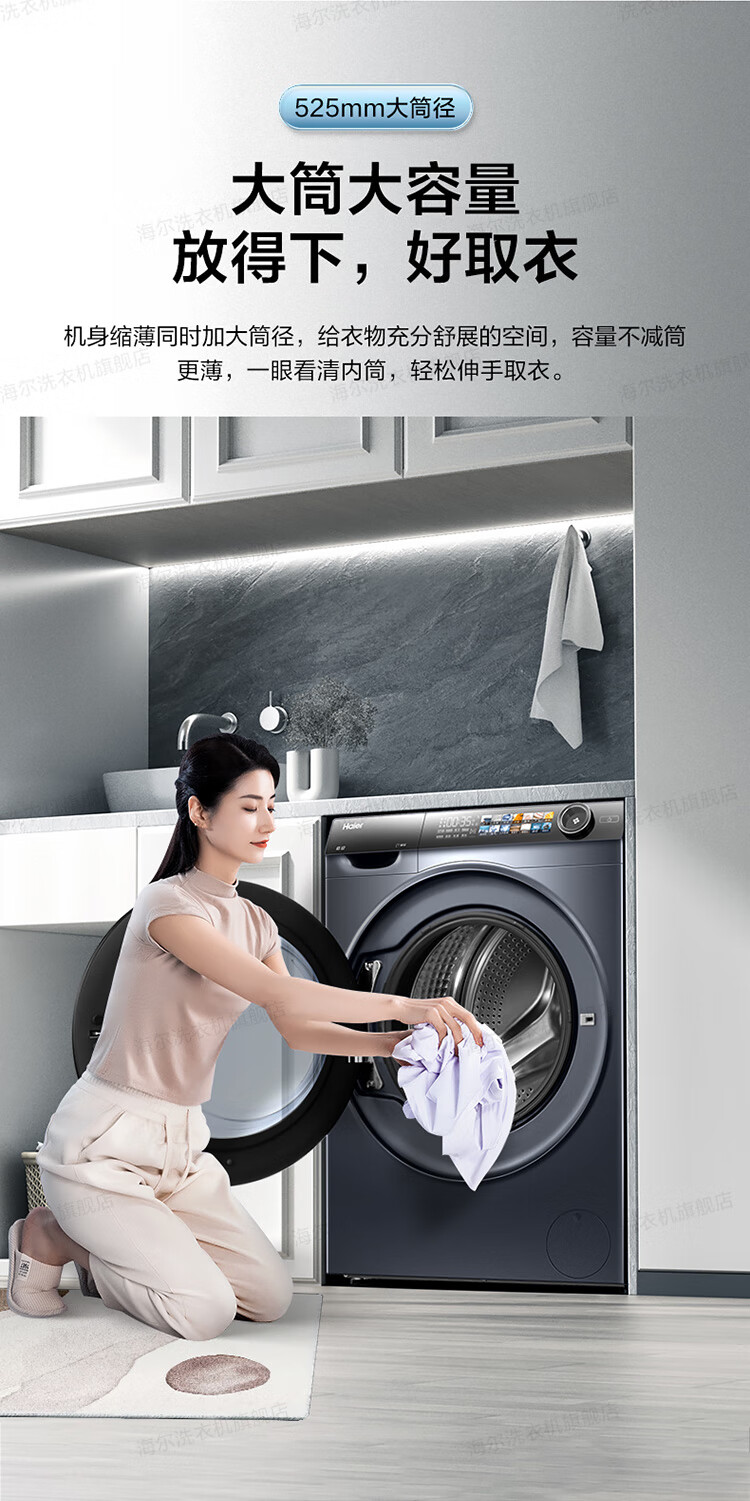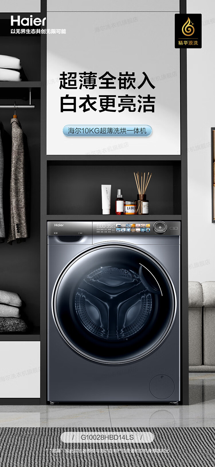 海尔(Haier)【宝藏款028精华洗】超薄洗衣机10公斤全自动家用大筒径智能投放晶彩大屏 以旧换新