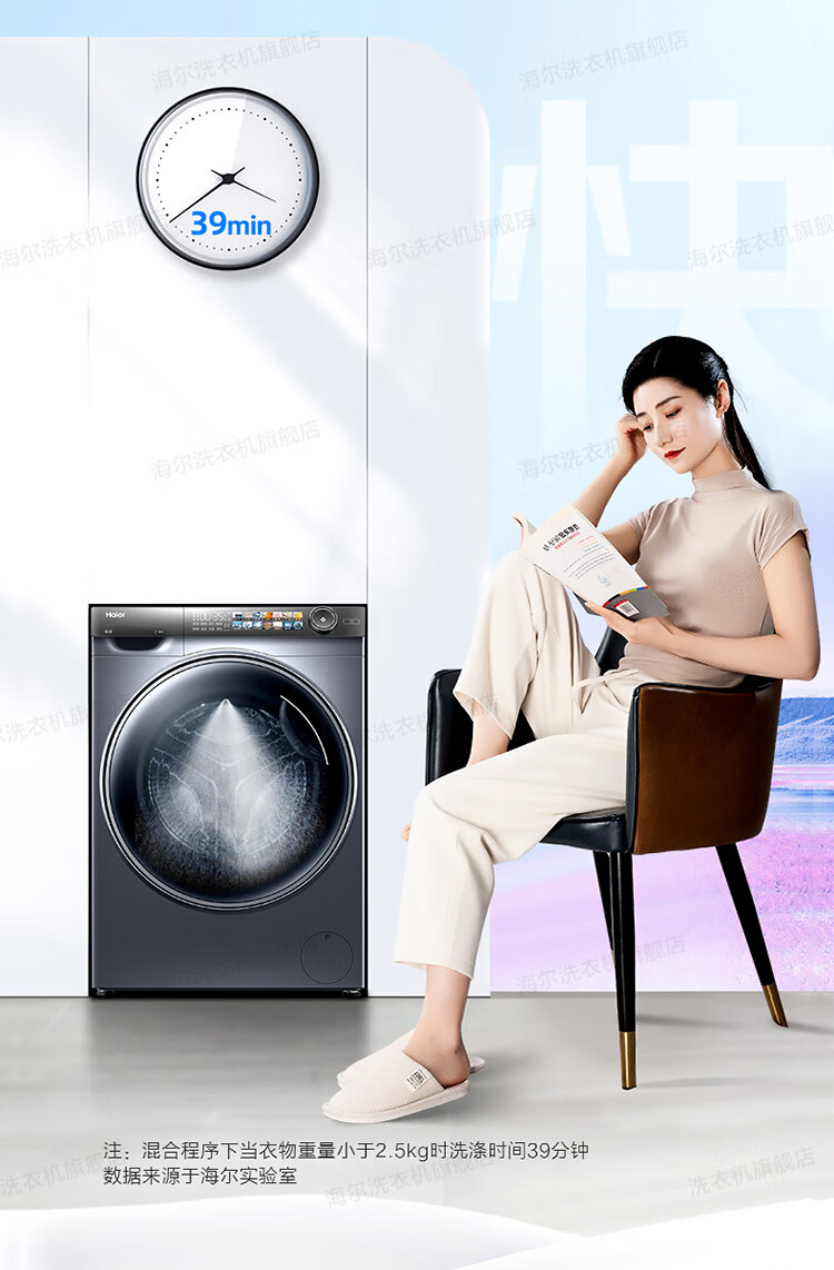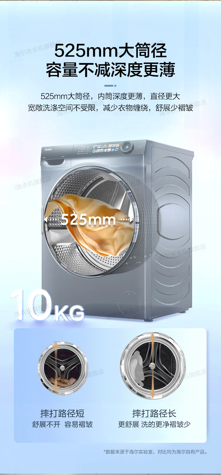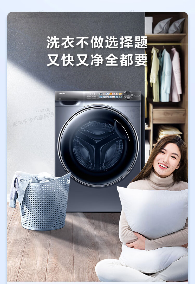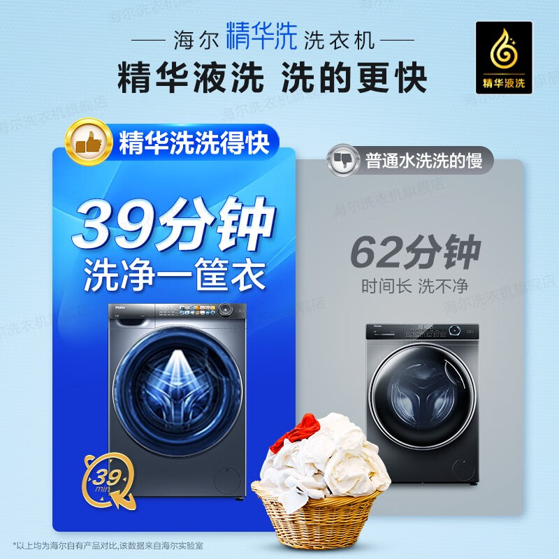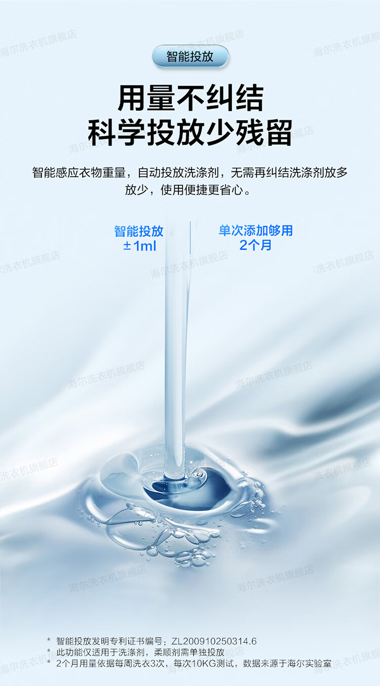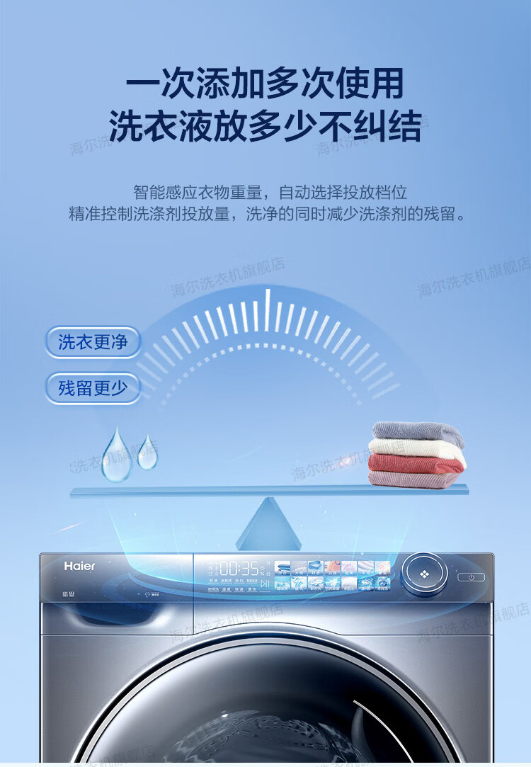 海尔(Haier)【宝藏款028精华洗】超薄洗衣机10公斤全自动家用大筒径智能投放晶彩大屏 以旧换新