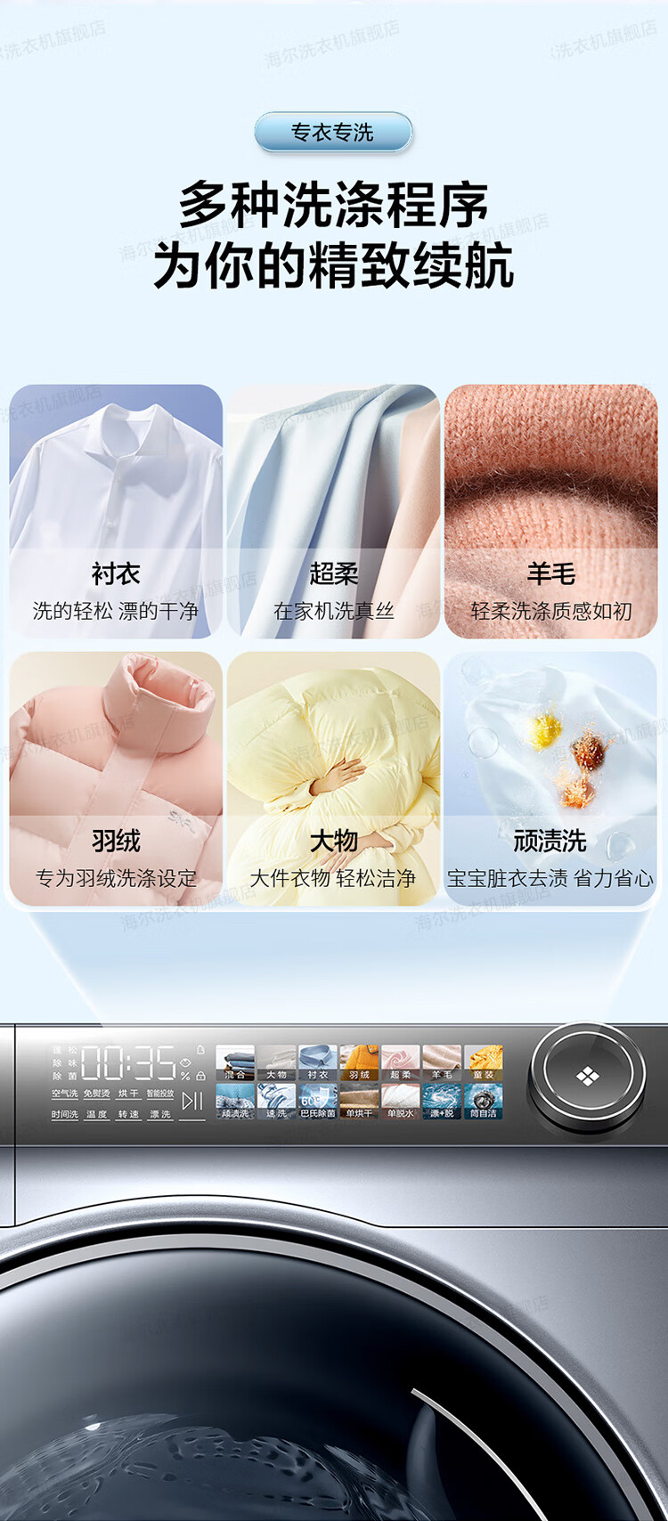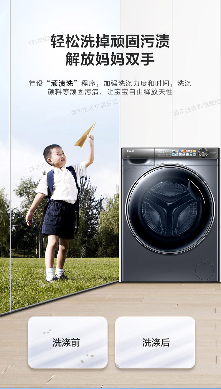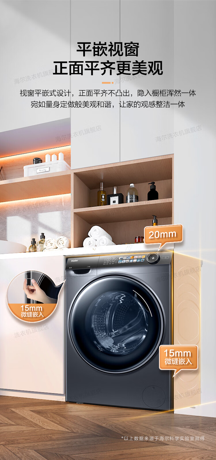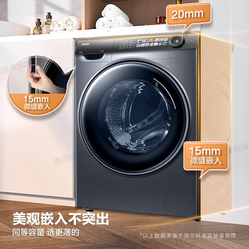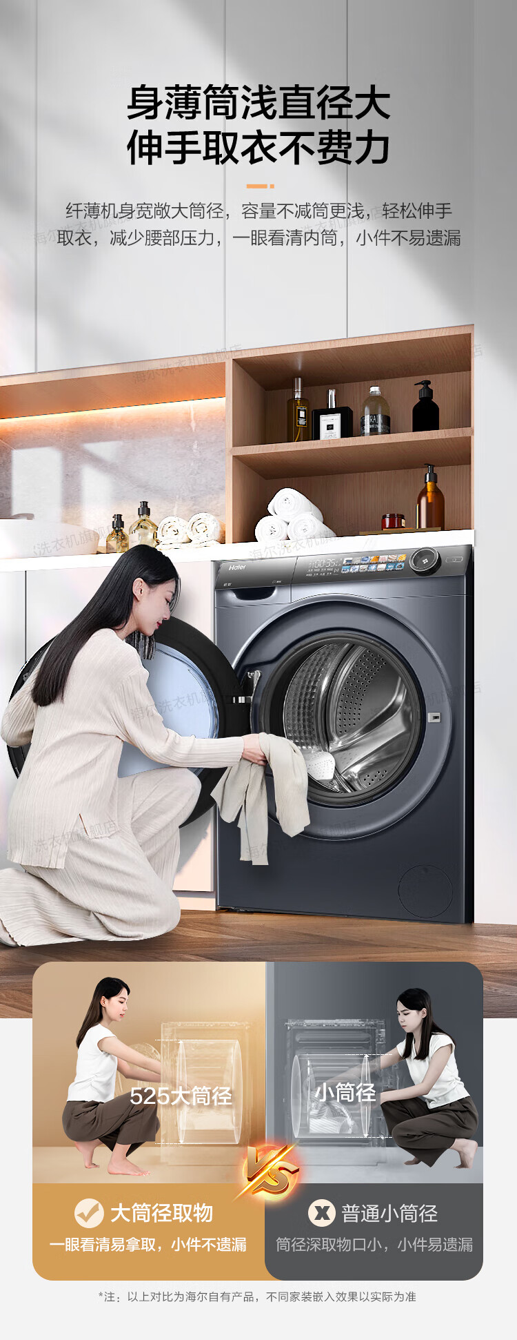 海尔(Haier)【宝藏款028精华洗】超薄洗衣机10公斤全自动家用大筒径智能投放晶彩大屏 以旧换新