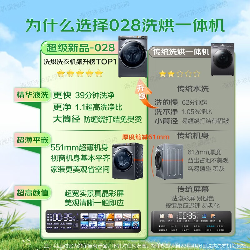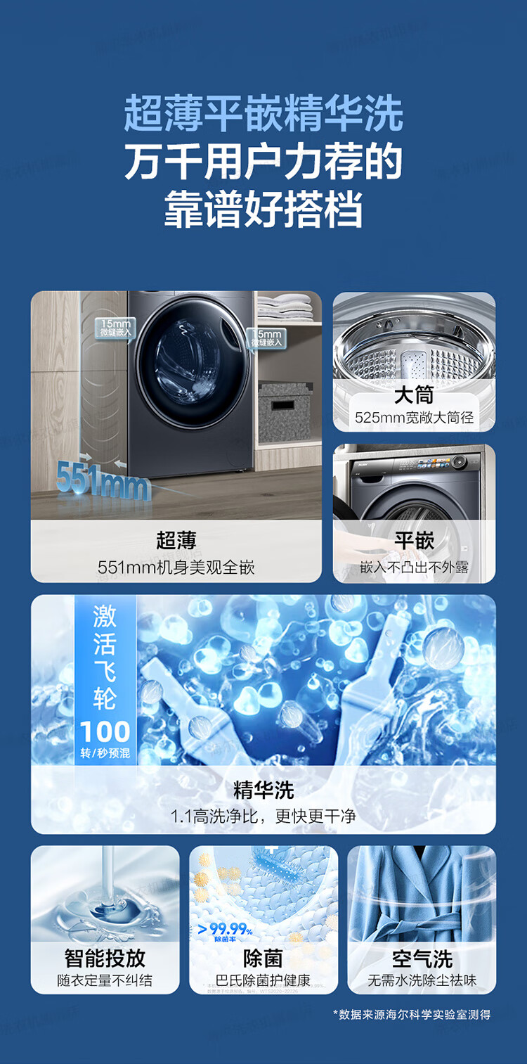 精华洗+洗烘一体+机身551mm+1.1高洗净比