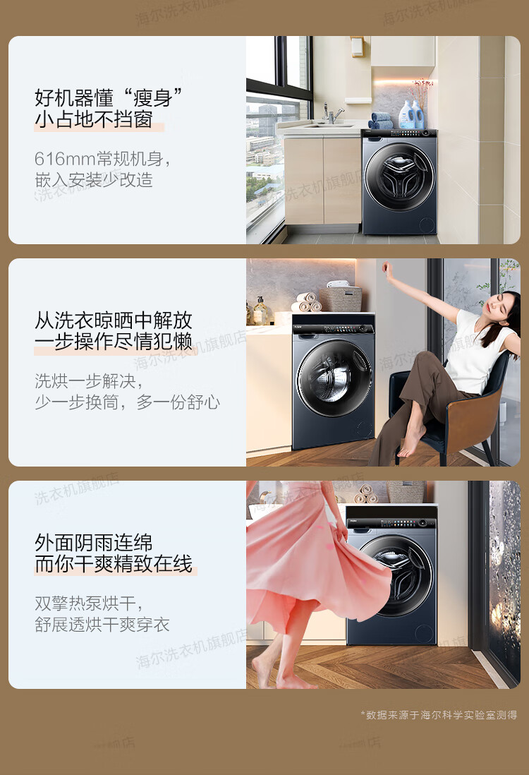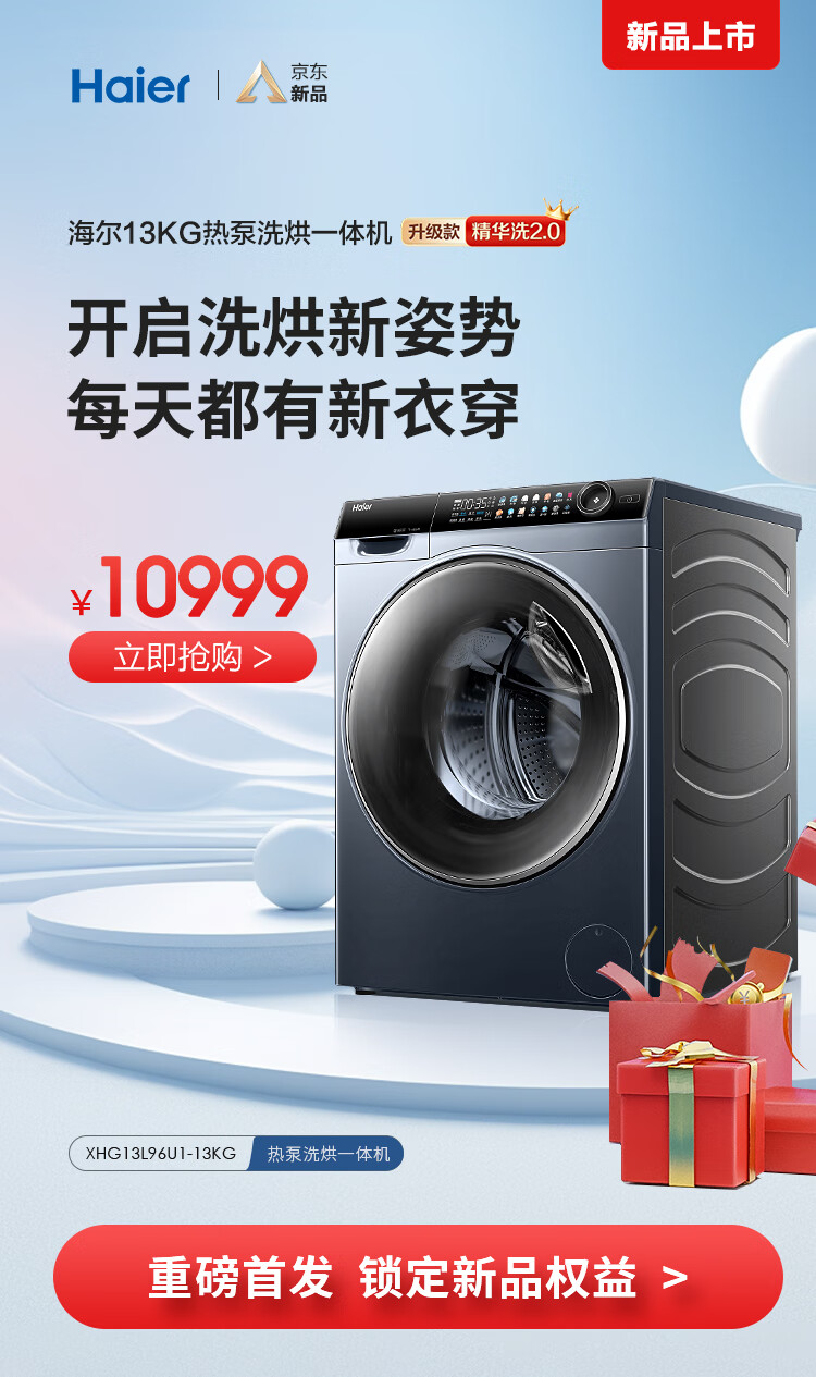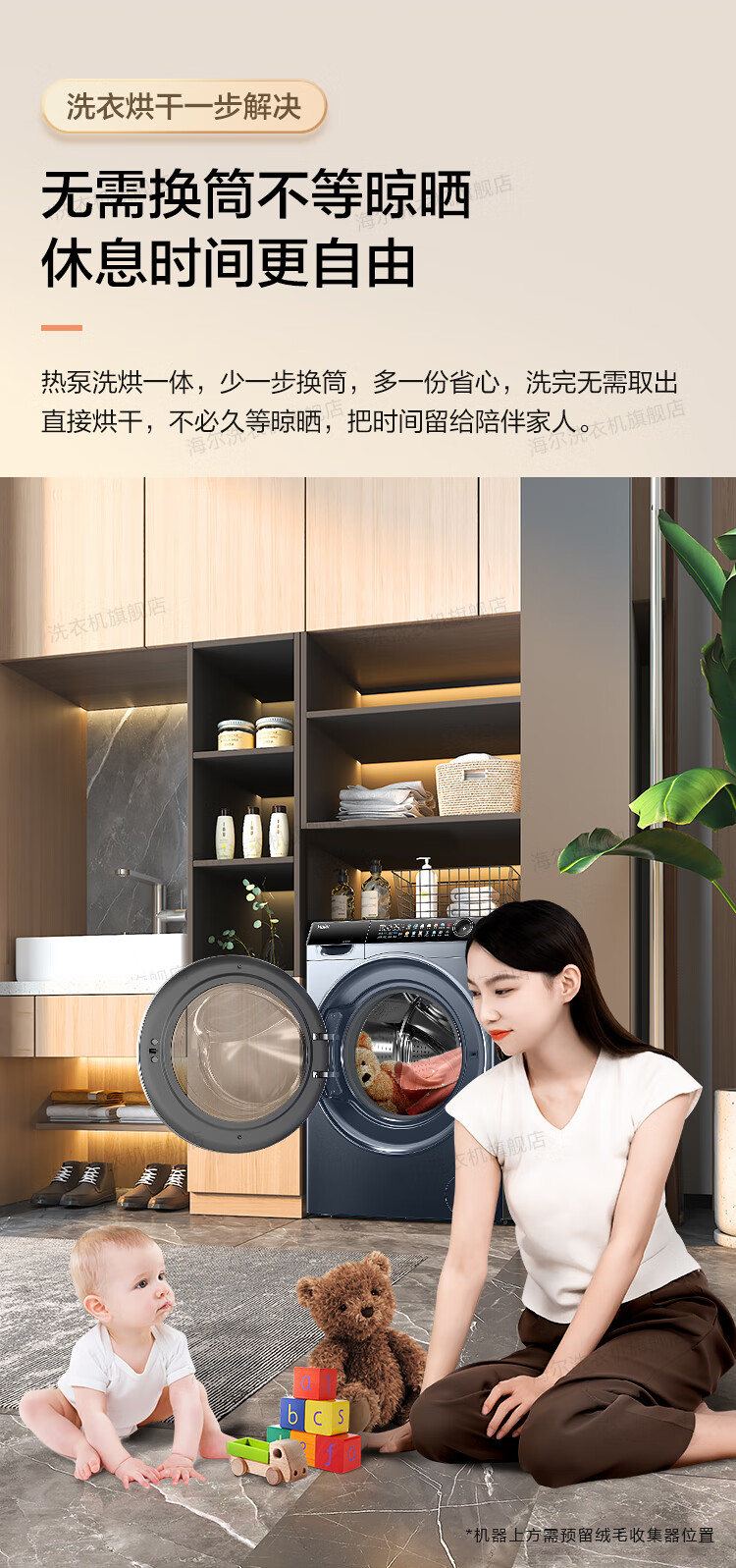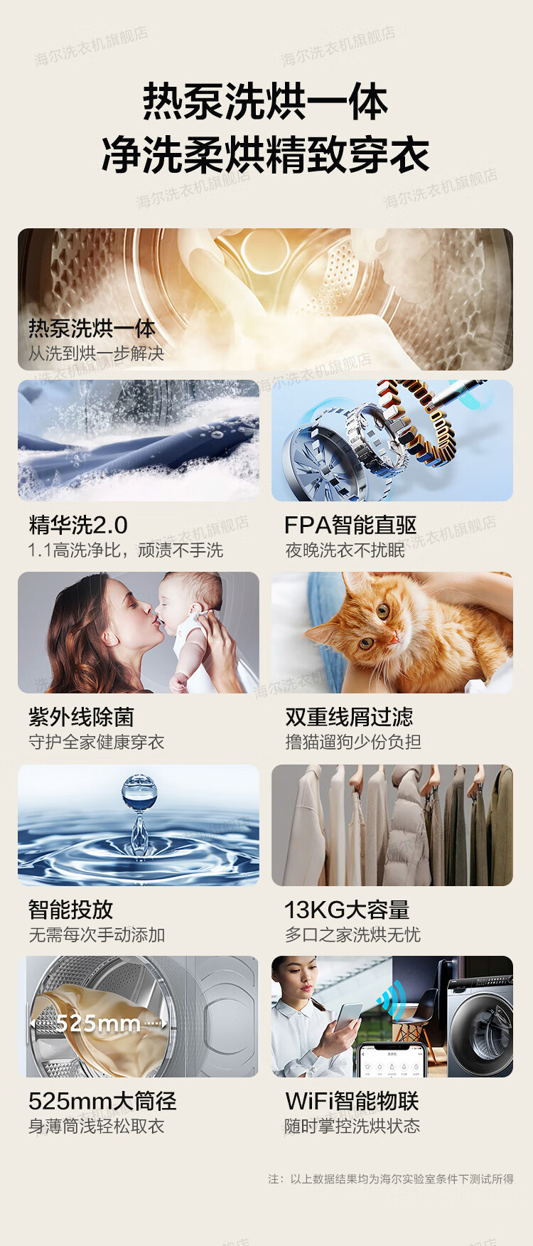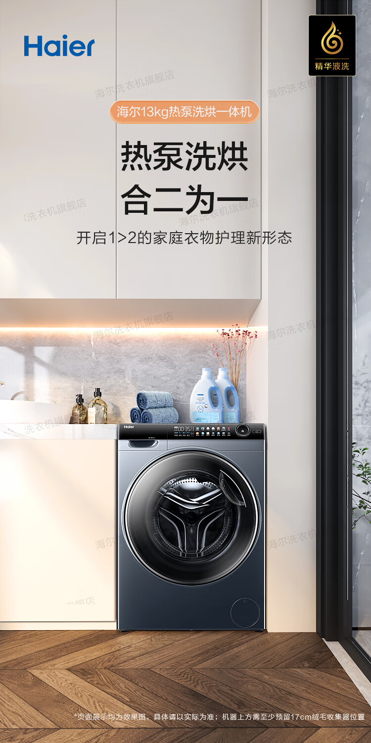 海尔(Haier)【升级精华洗2.0】13KG滚筒洗衣机双擎热泵洗烘一体机大容量晶彩屏直驱525大筒径智能物联以旧换新