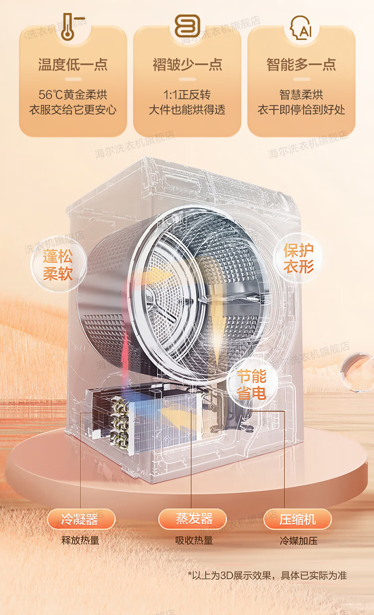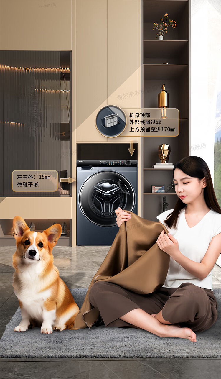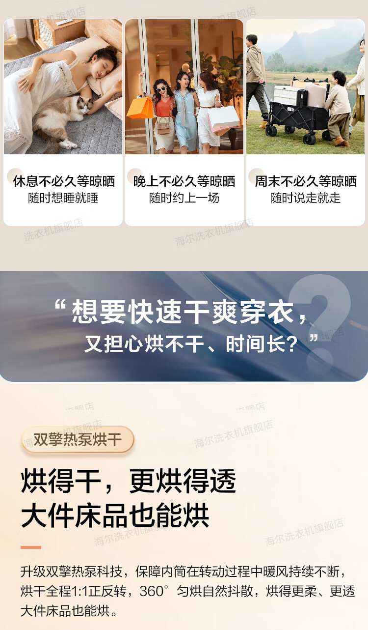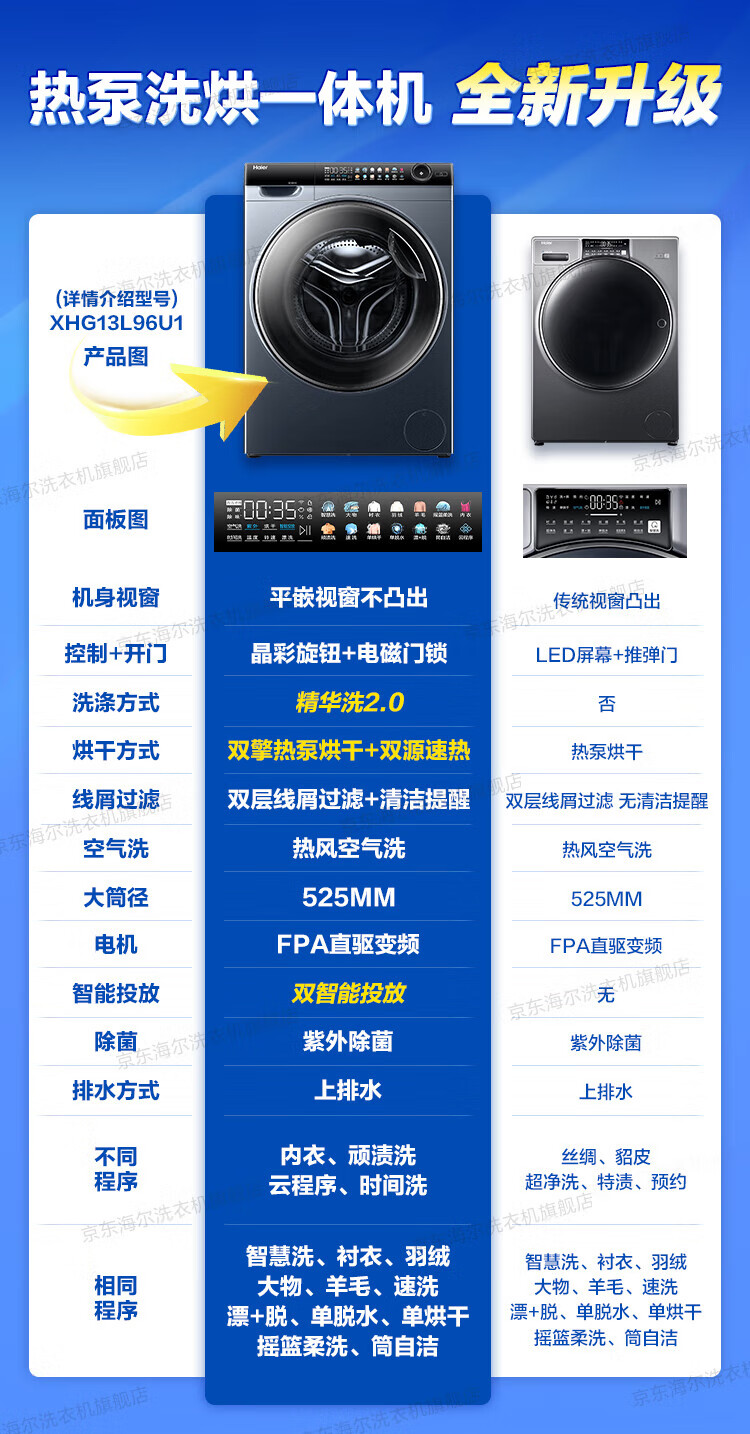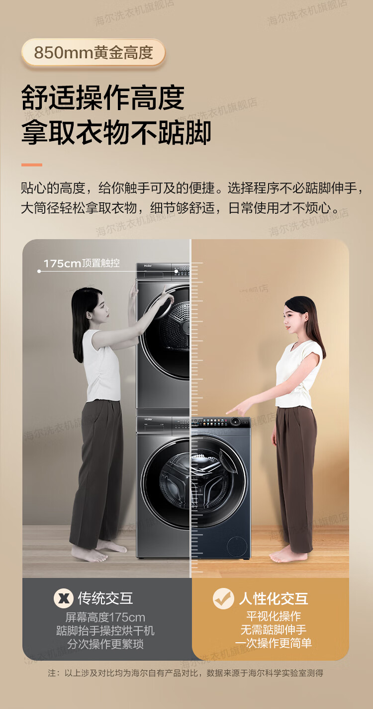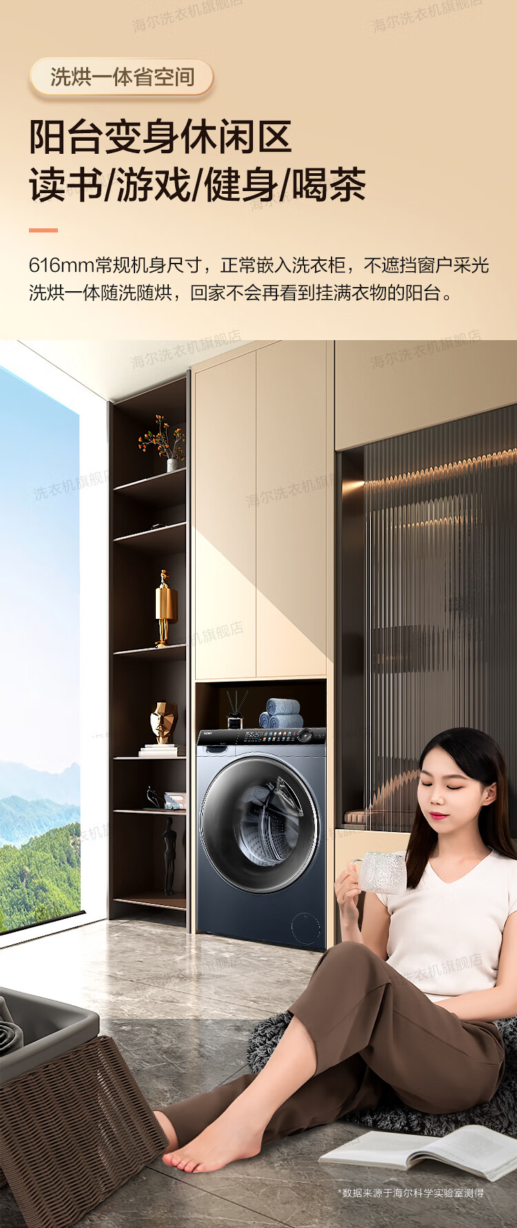 海尔(Haier)【升级精华洗2.0】13KG滚筒洗衣机双擎热泵洗烘一体机大容量晶彩屏直驱525大筒径智能物联以旧换新