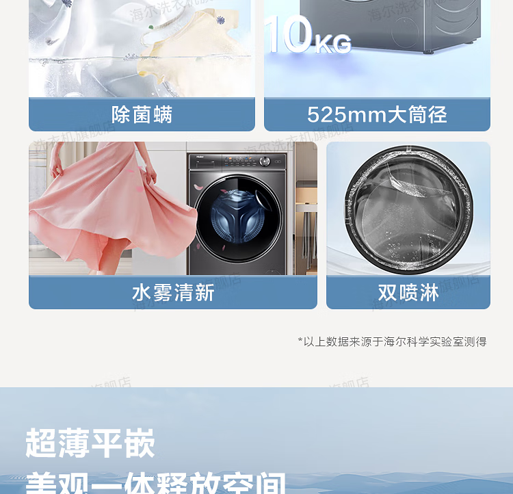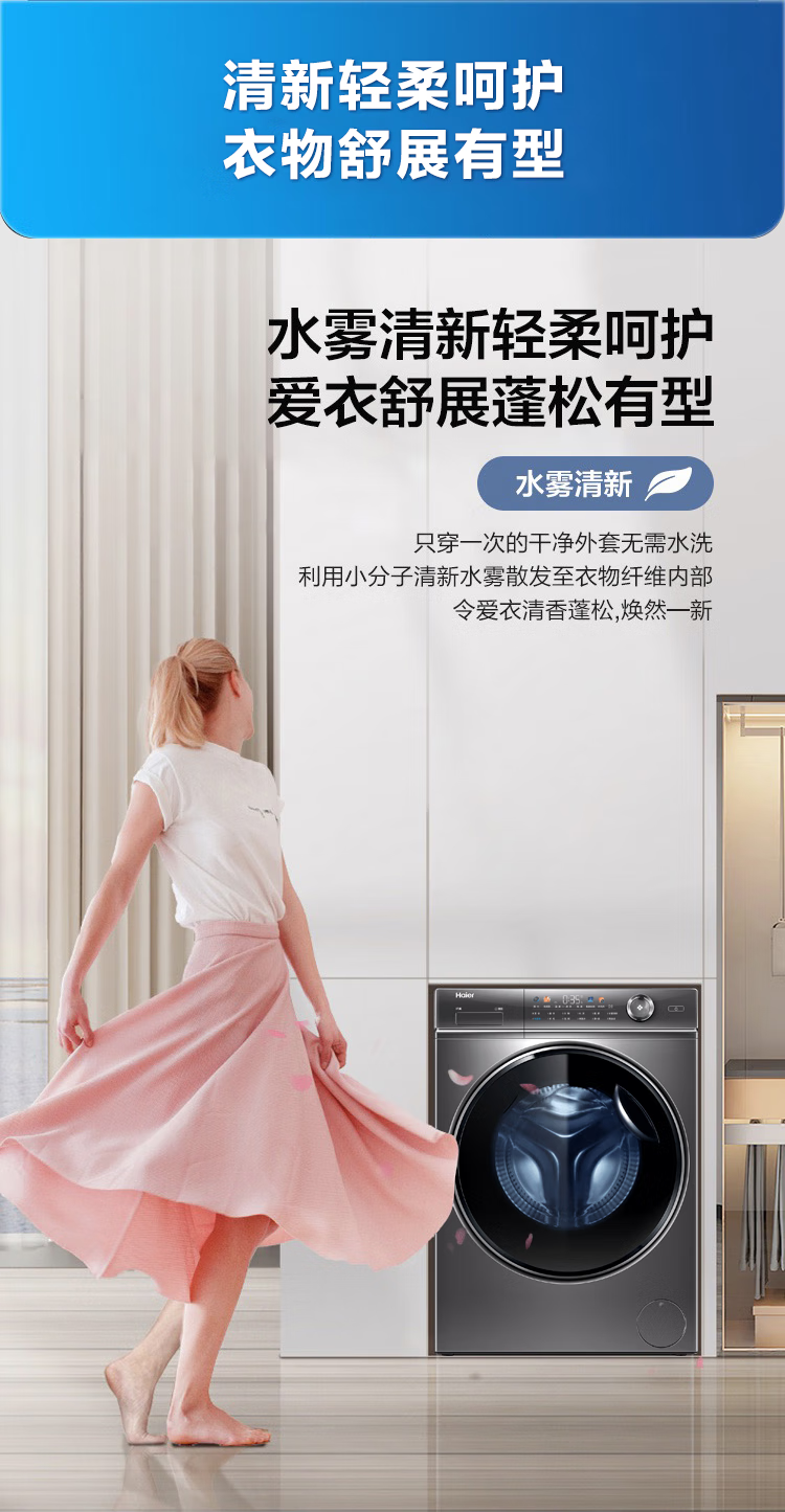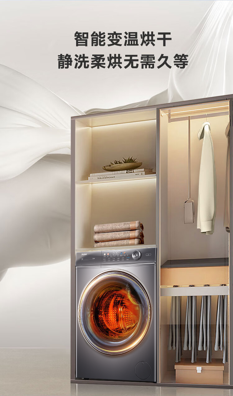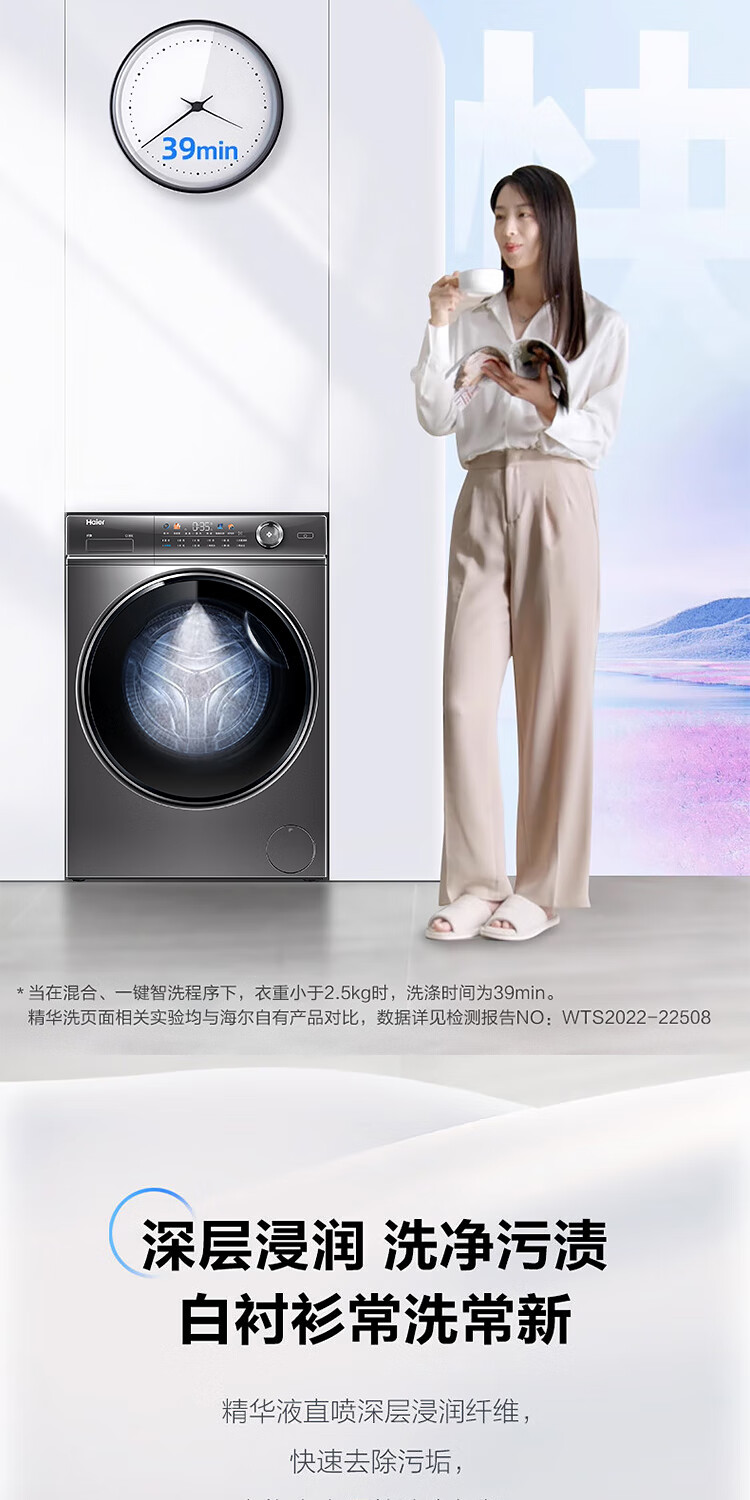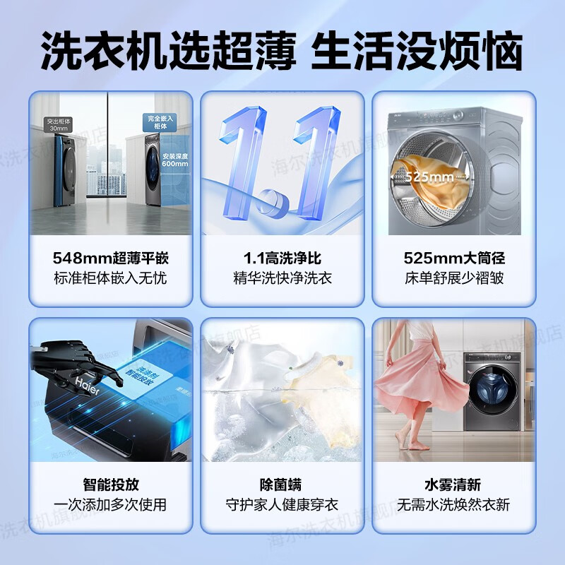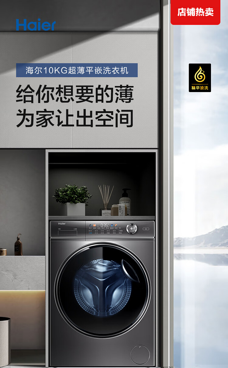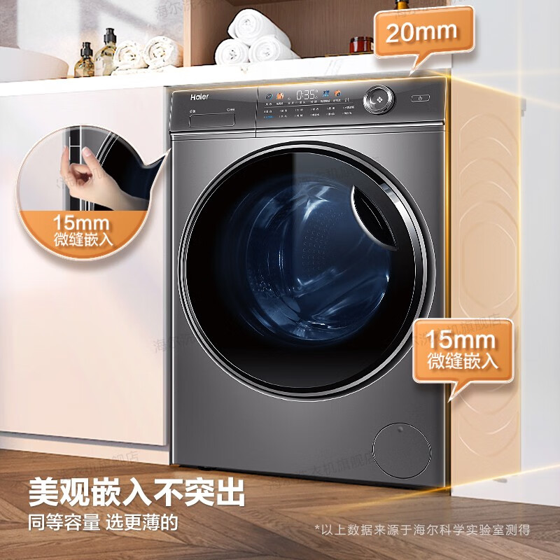 海尔(Haier)【326精华洗超薄平嵌系列】纤美超薄滚筒洗衣机全自动晶彩屏10/12公斤大筒径14126升级款 以旧换新