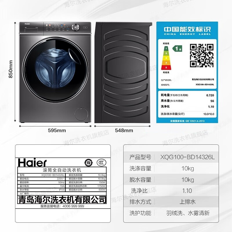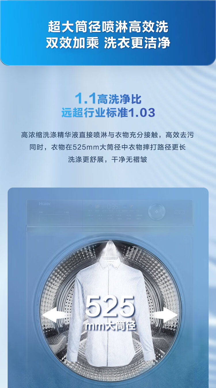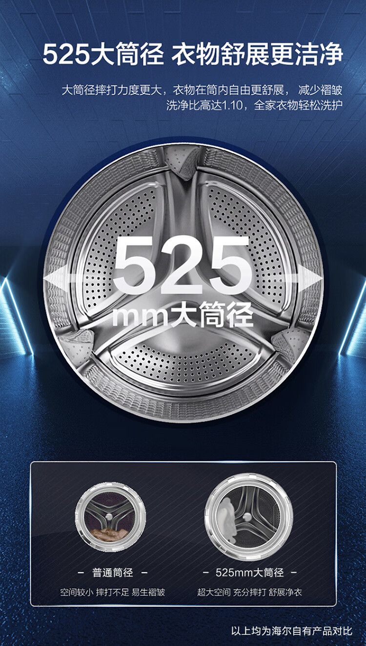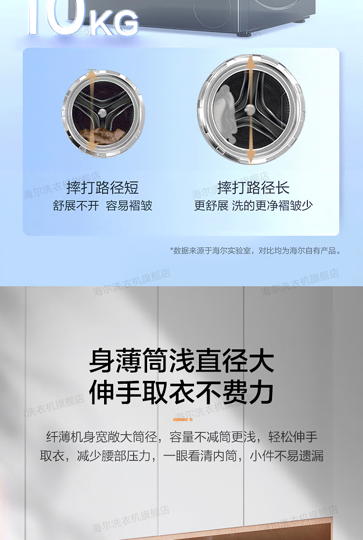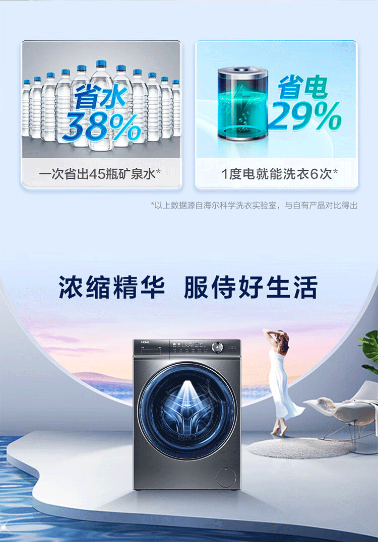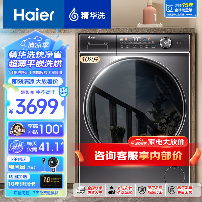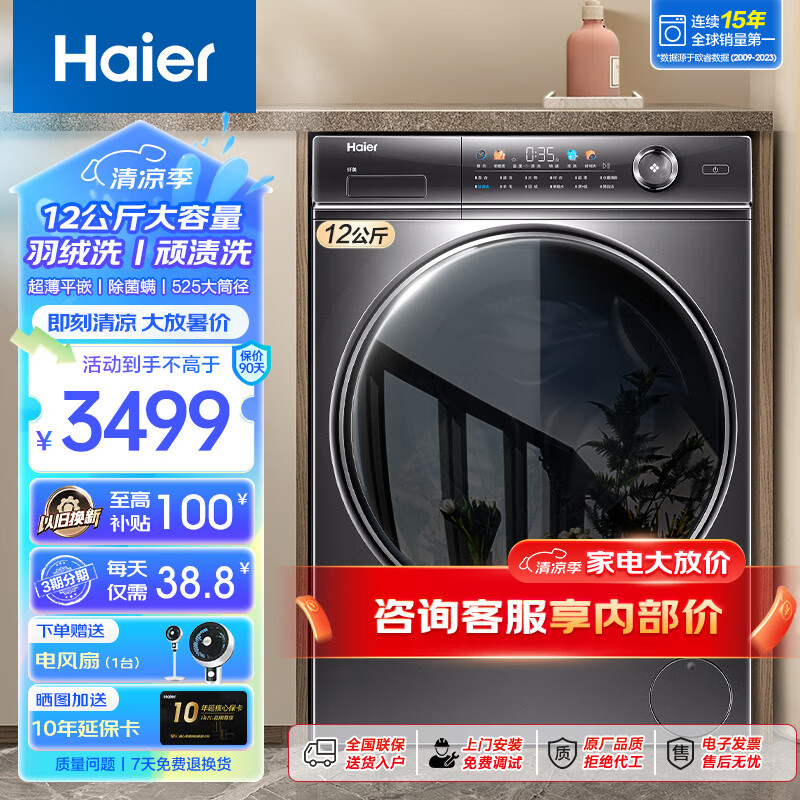 海尔(Haier)【326精华洗超薄平嵌系列】纤美超薄滚筒洗衣机全自动晶彩屏10/12公斤大筒径14126升级款 以旧换新