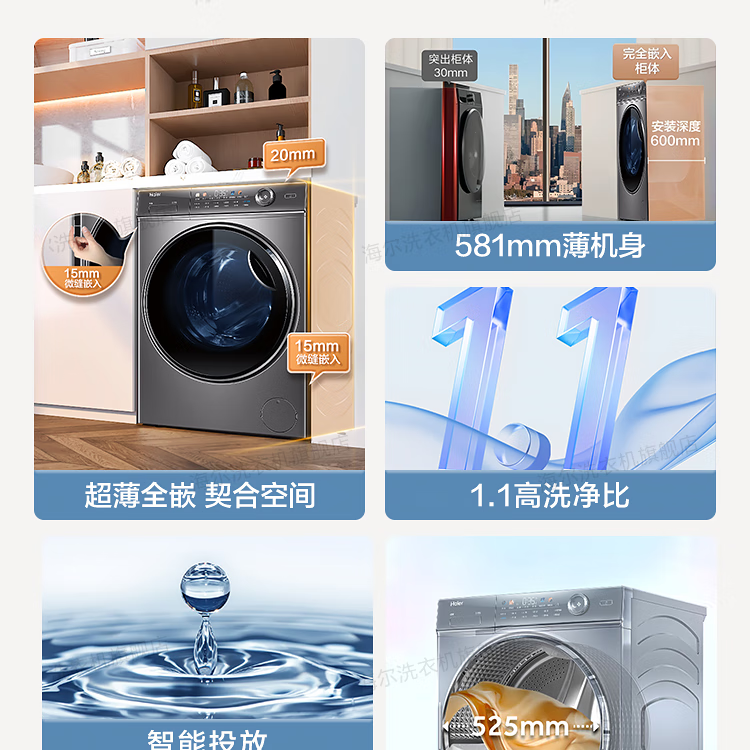 【省空间推荐】581mm超薄+精华洗+洗烘+智投