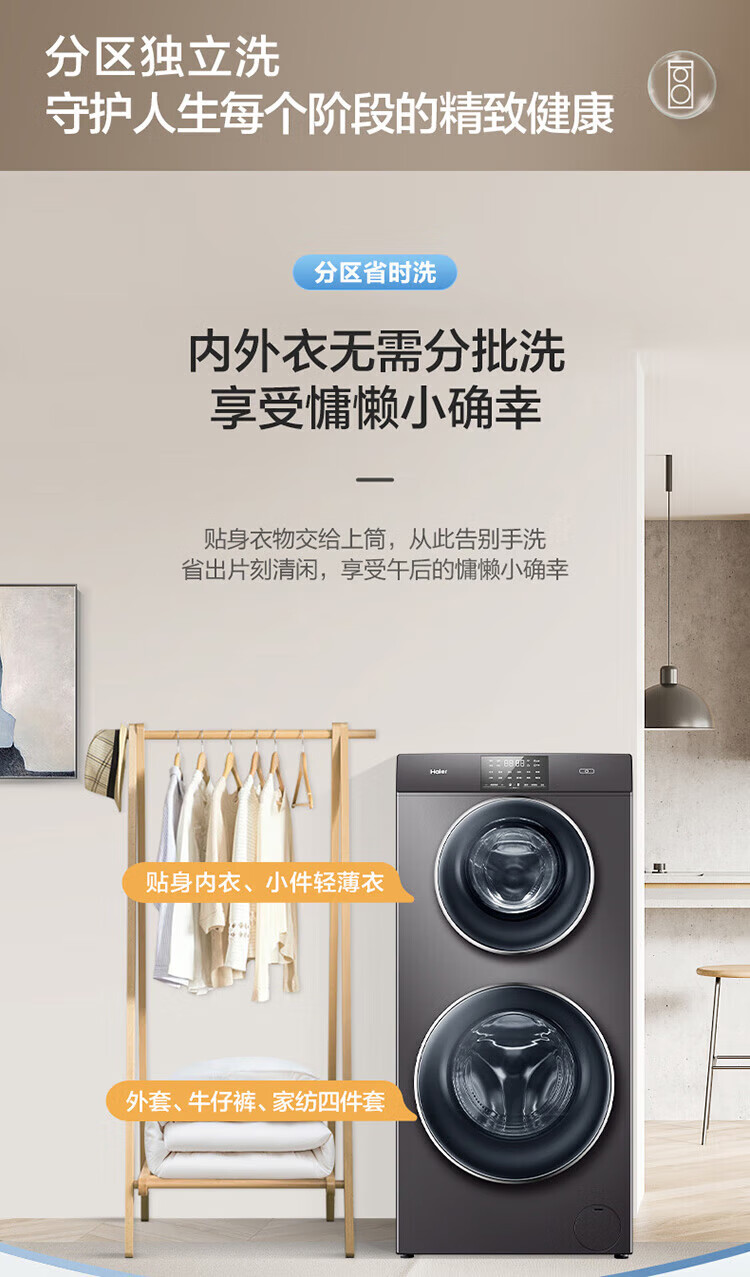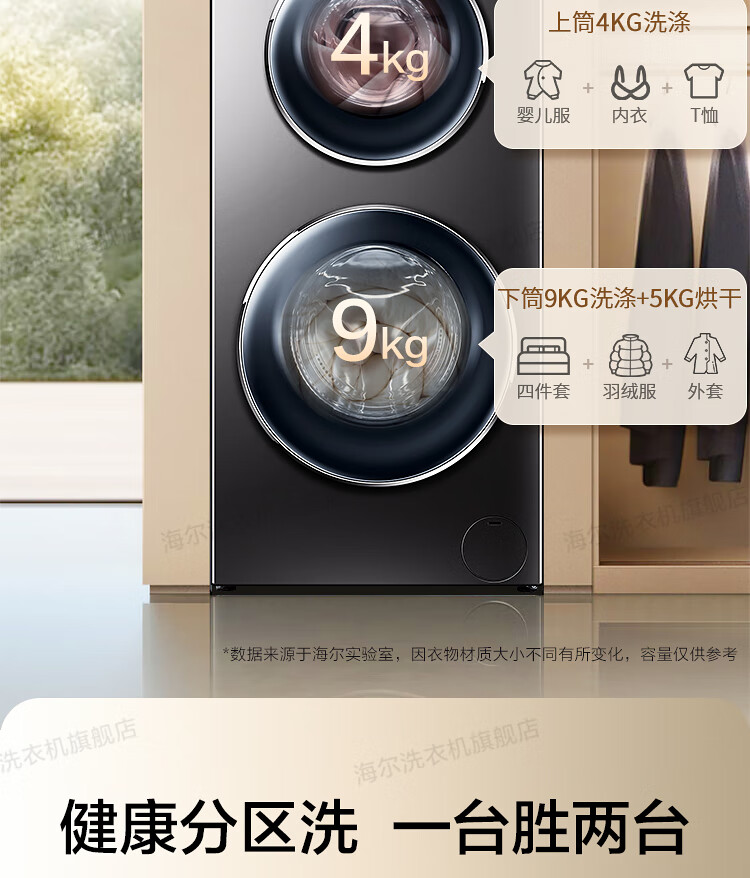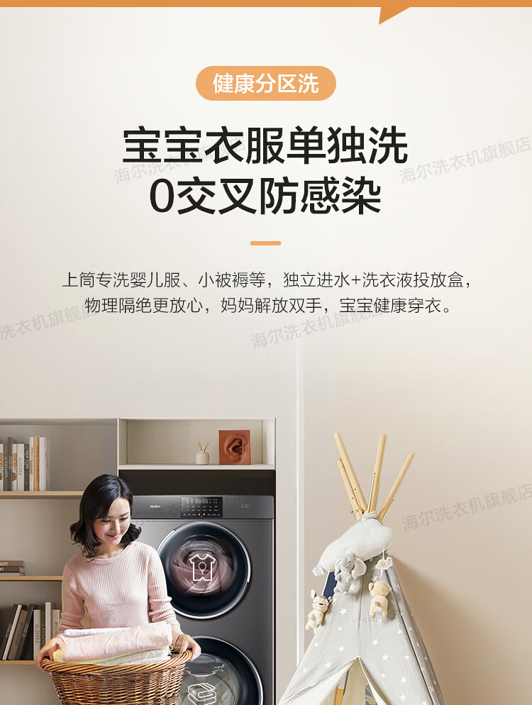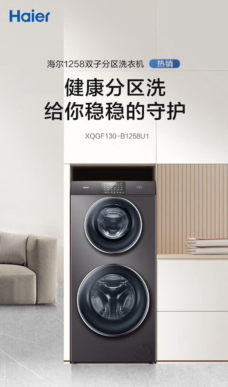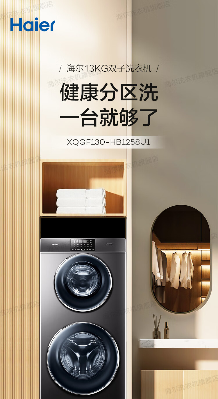 海尔13公斤子母洗衣机滚筒全自动母婴分区双子洗衣机双桶婴幼童内衣洗衣机家用智能大容量除螨以旧换新 13公斤洗烘一体+分区+除螨洗+空气洗+手机物联