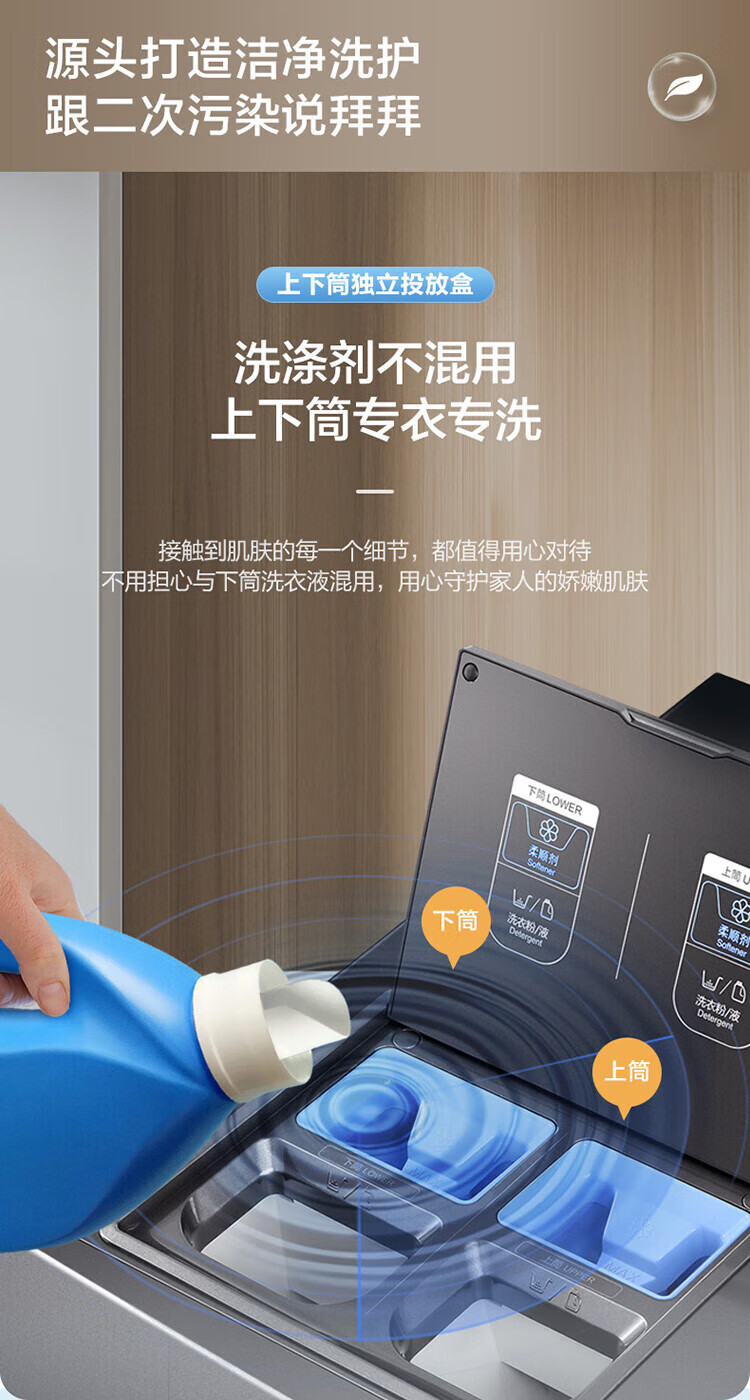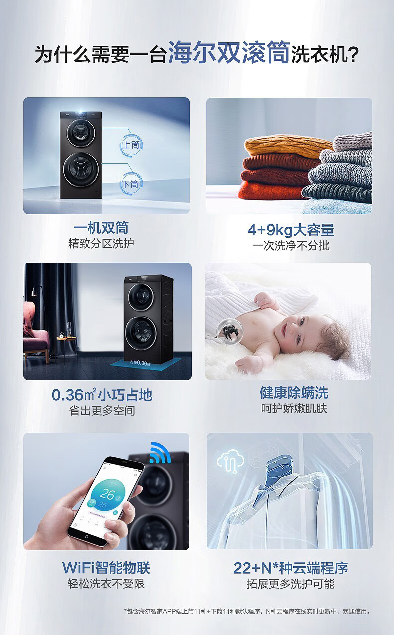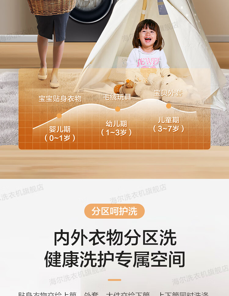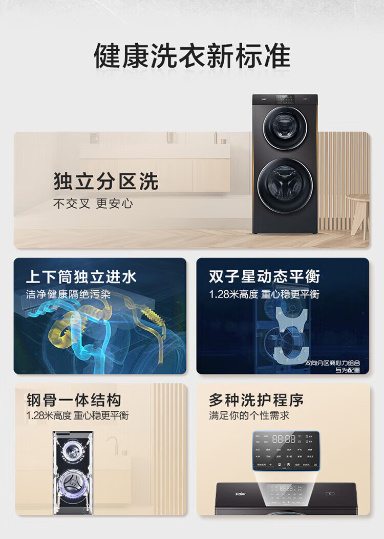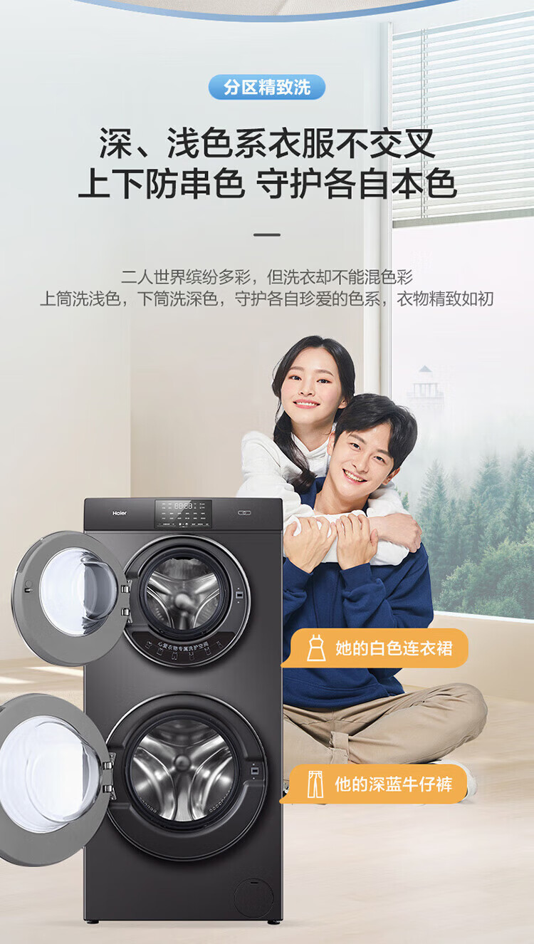 海尔13公斤子母洗衣机滚筒全自动母婴分区双子洗衣机双桶婴幼童内衣洗衣机家用智能大容量除螨以旧换新 13公斤洗烘一体+分区+除螨洗+空气洗+手机物联