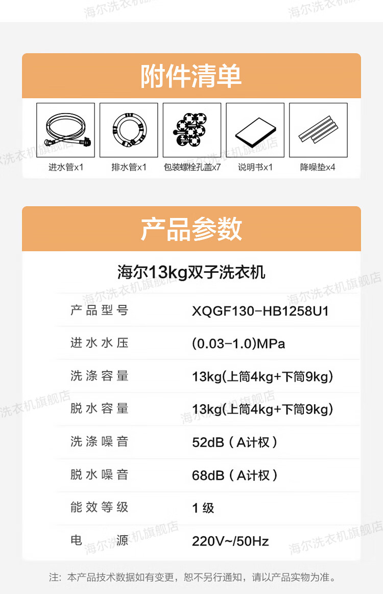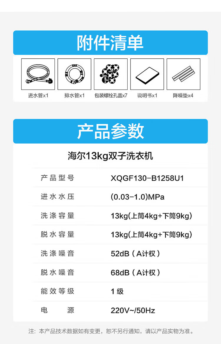 洗衣机*1 说明书*1 进水管*1 排水管*1