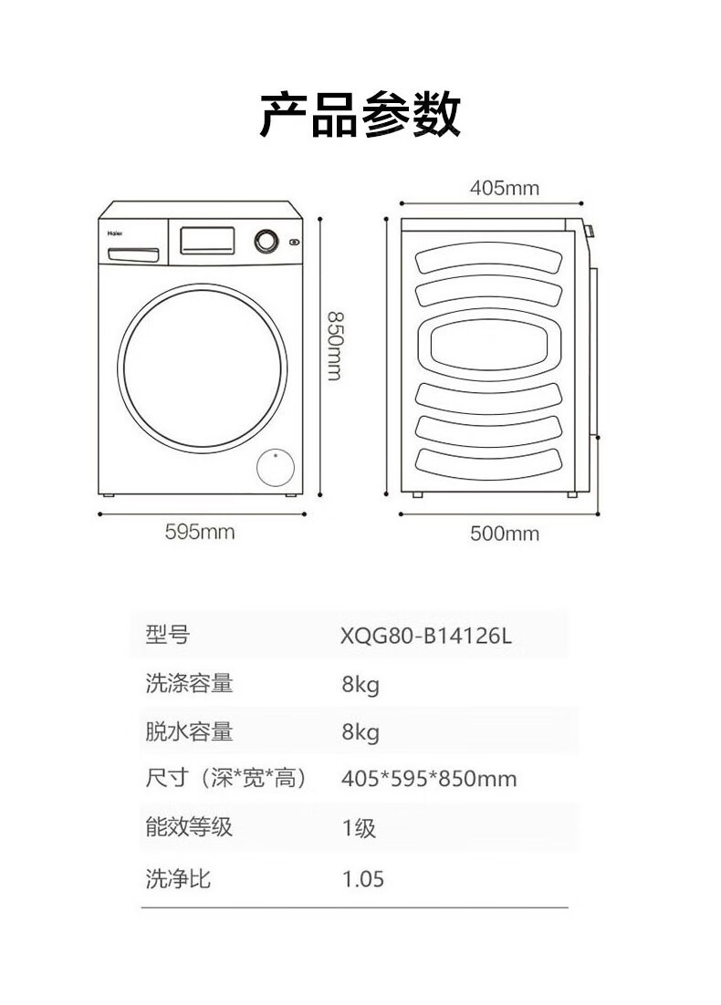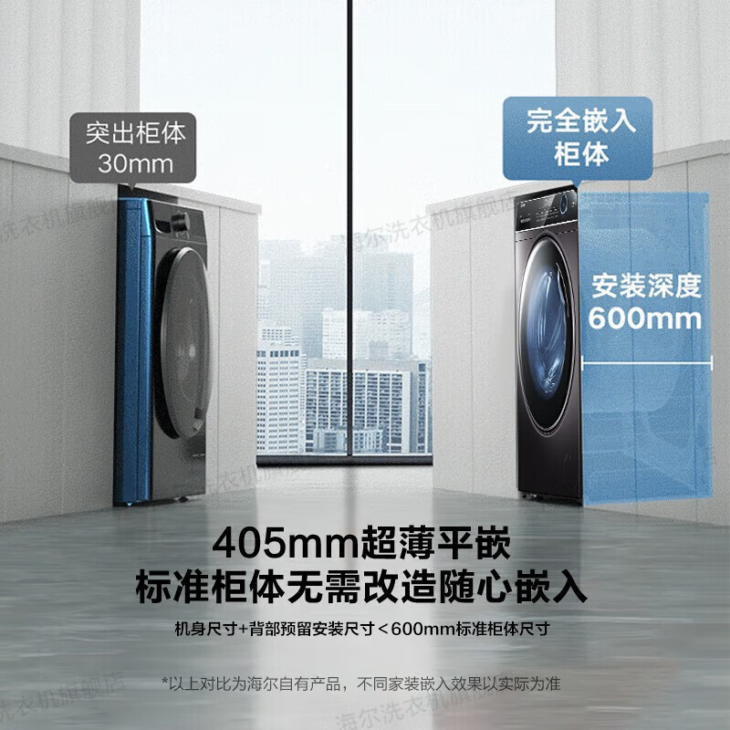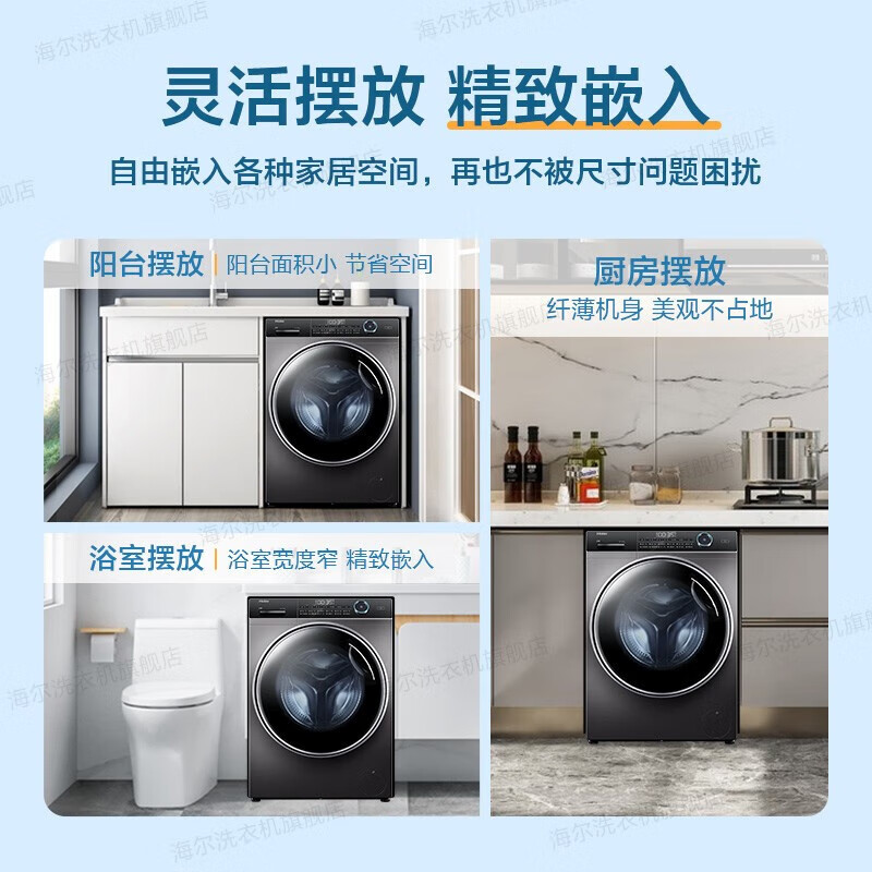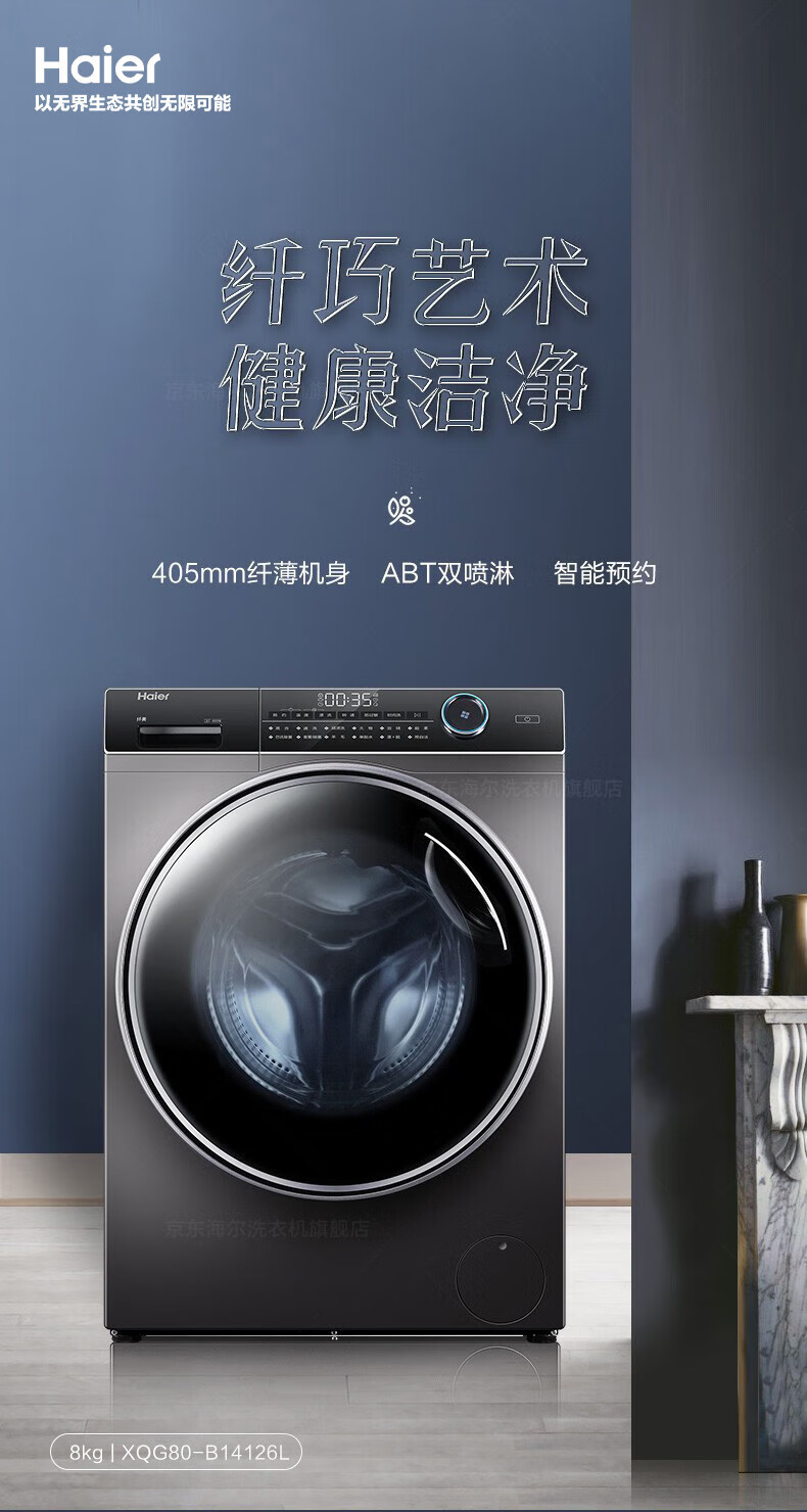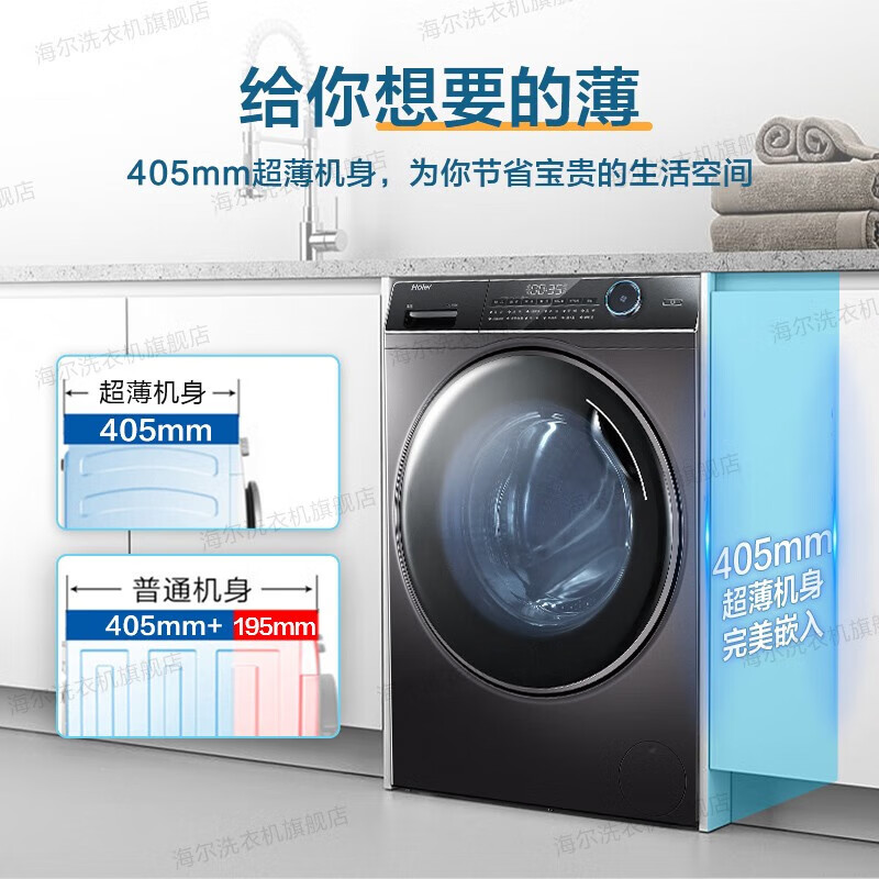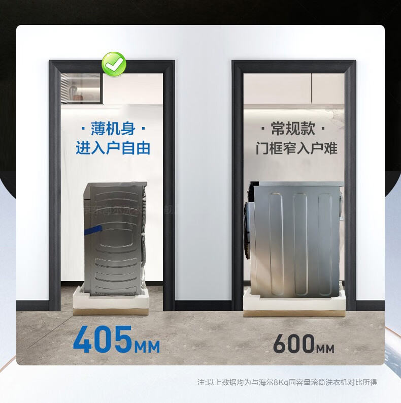 海尔(Haier)【行业超薄TOP】海尔8公斤超薄款滚筒洗衣机全自动家用小户型嵌入式变频一级节能大筒径除菌除螨 8公斤+405超薄+525大筒径+巴式除菌+羽绒洗