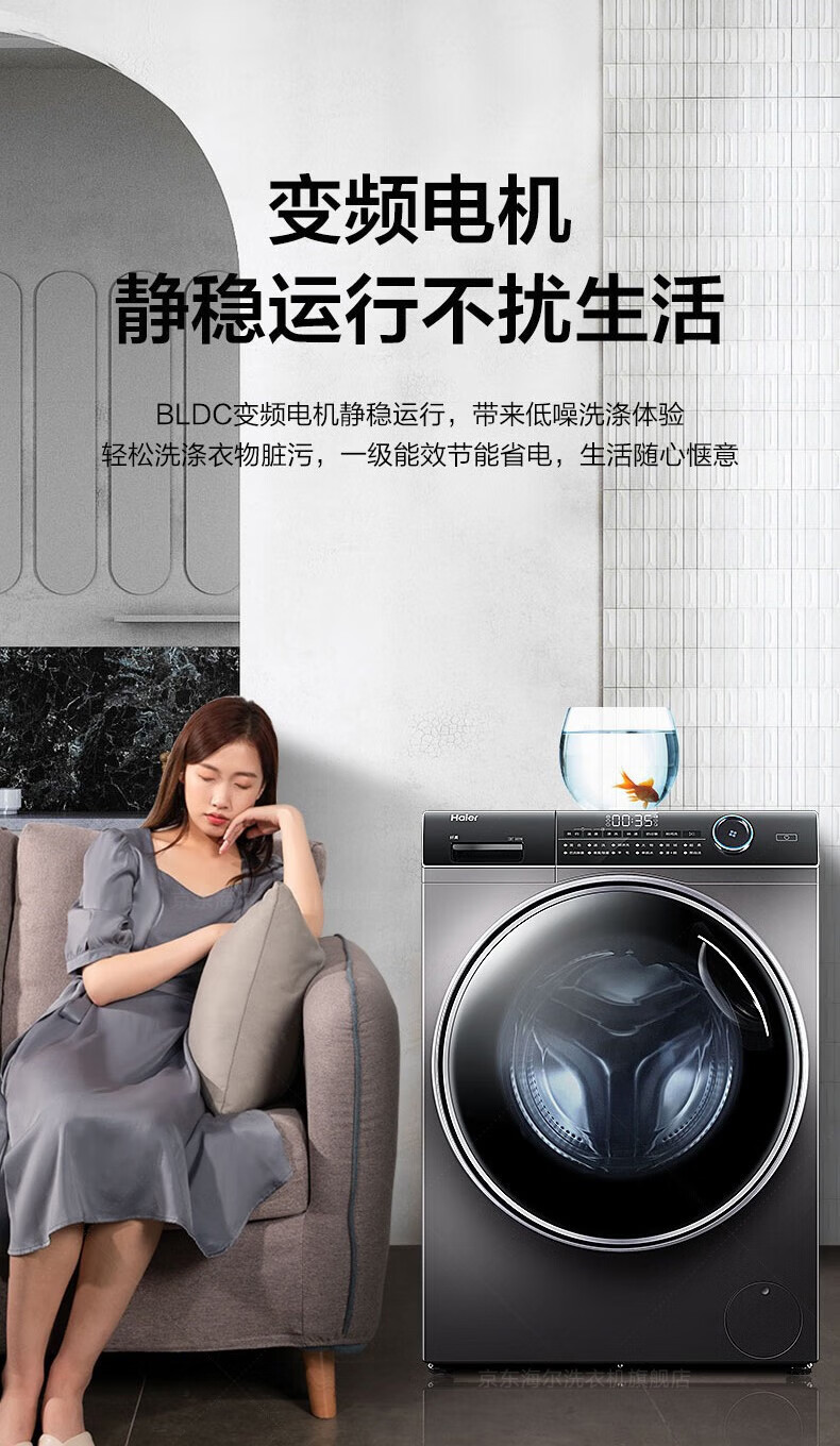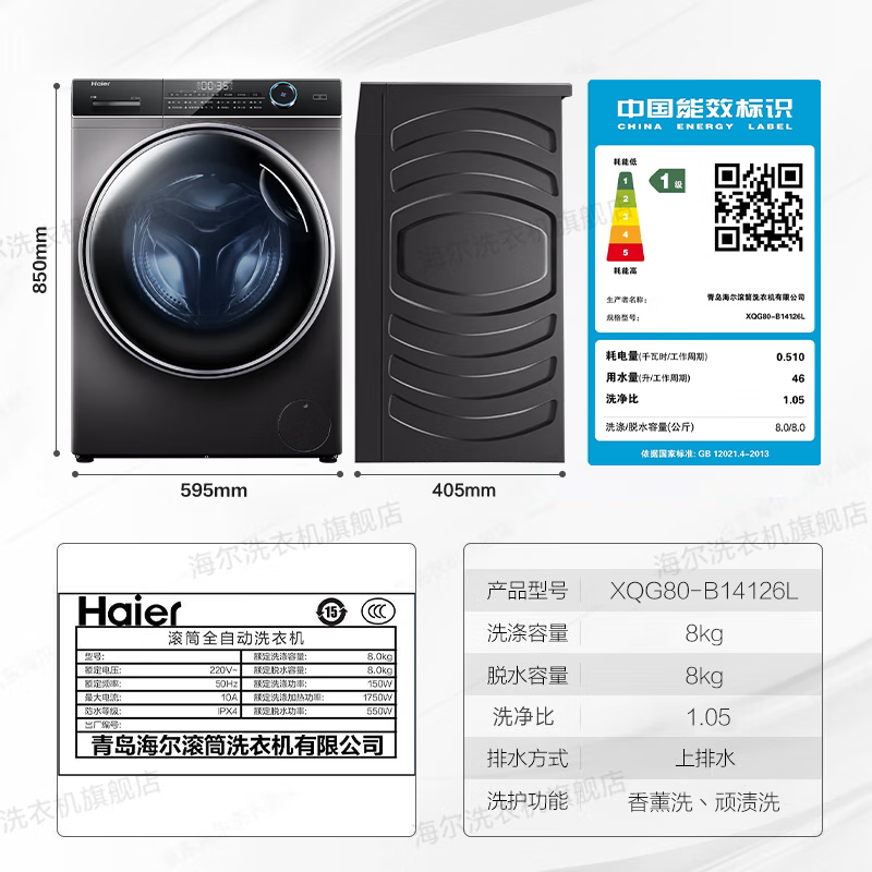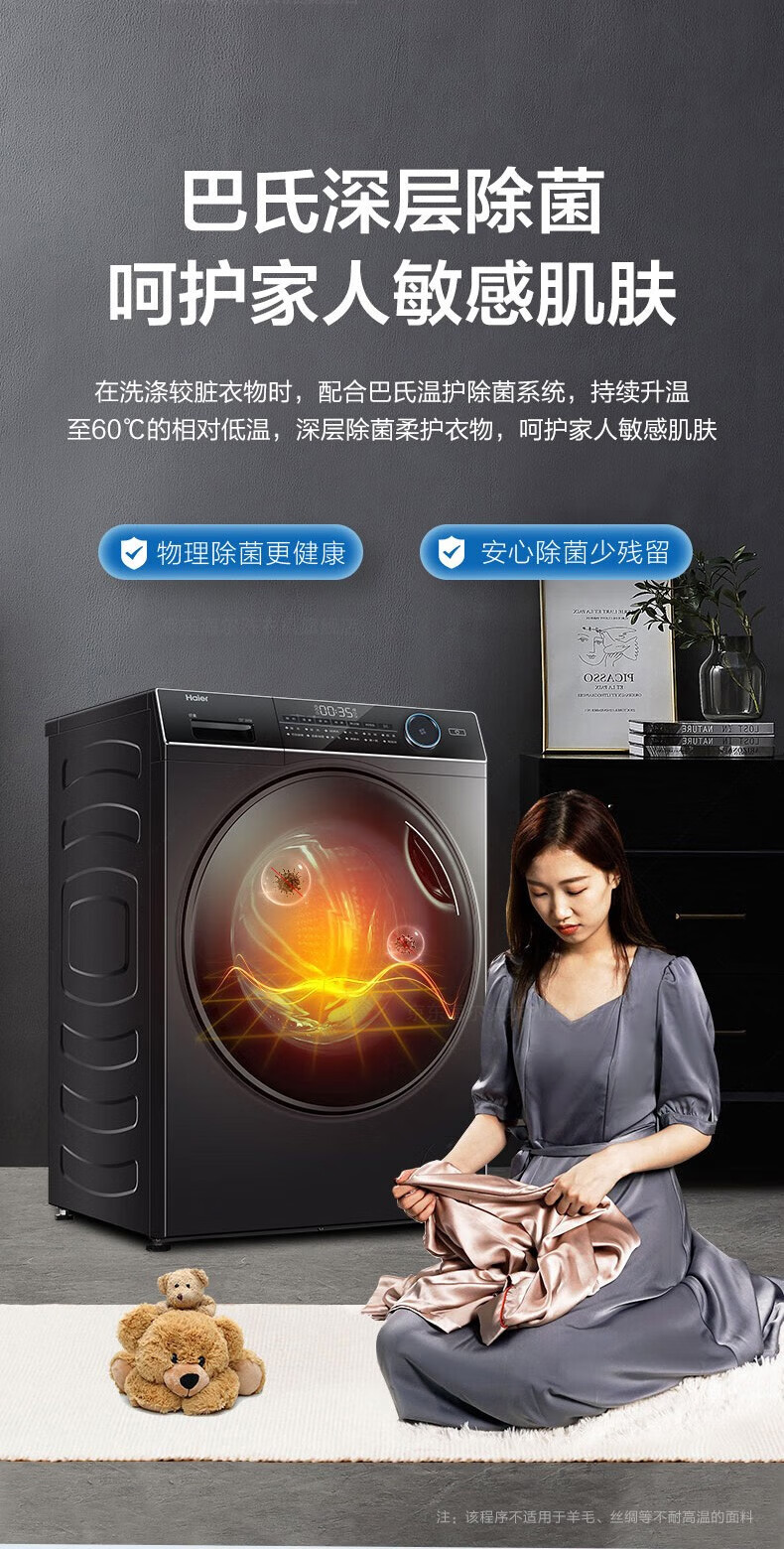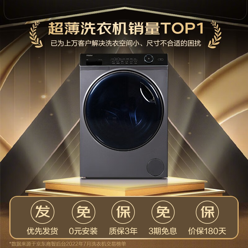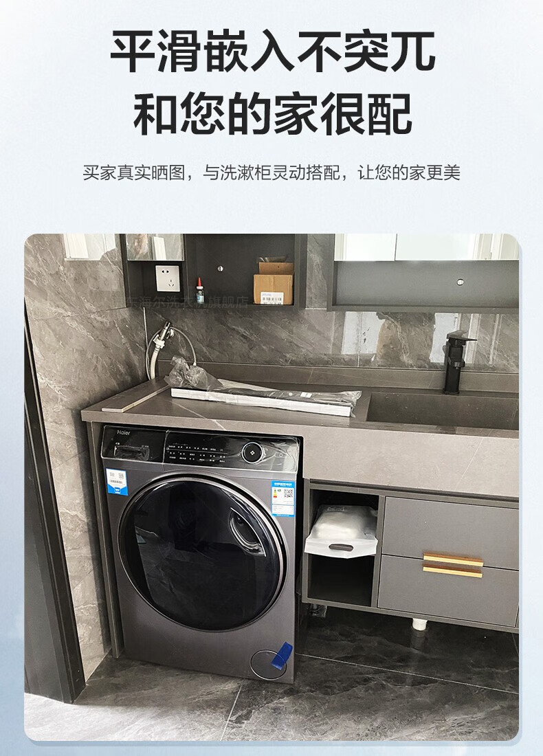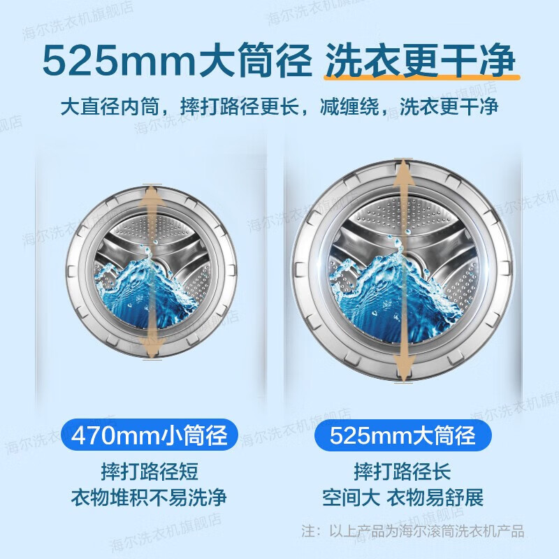 海尔(Haier)【行业超薄TOP】海尔8公斤超薄款滚筒洗衣机全自动家用小户型嵌入式变频一级节能大筒径除菌除螨 8公斤+405超薄+525大筒径+巴式除菌+羽绒洗
