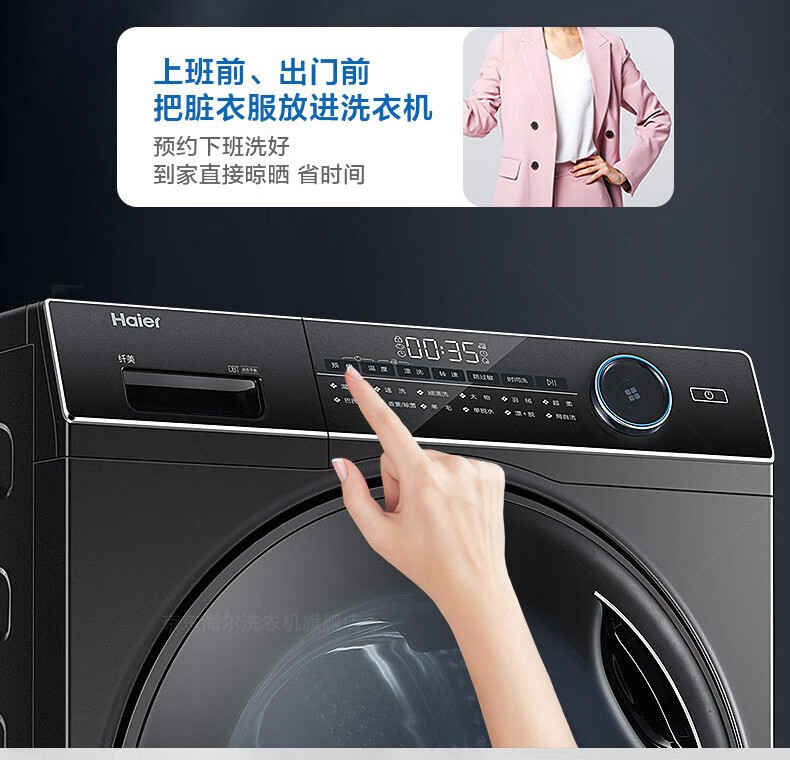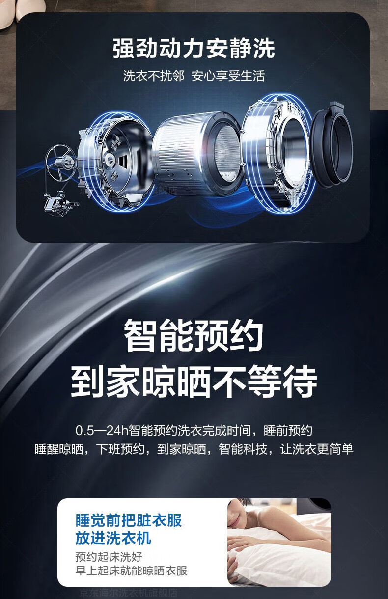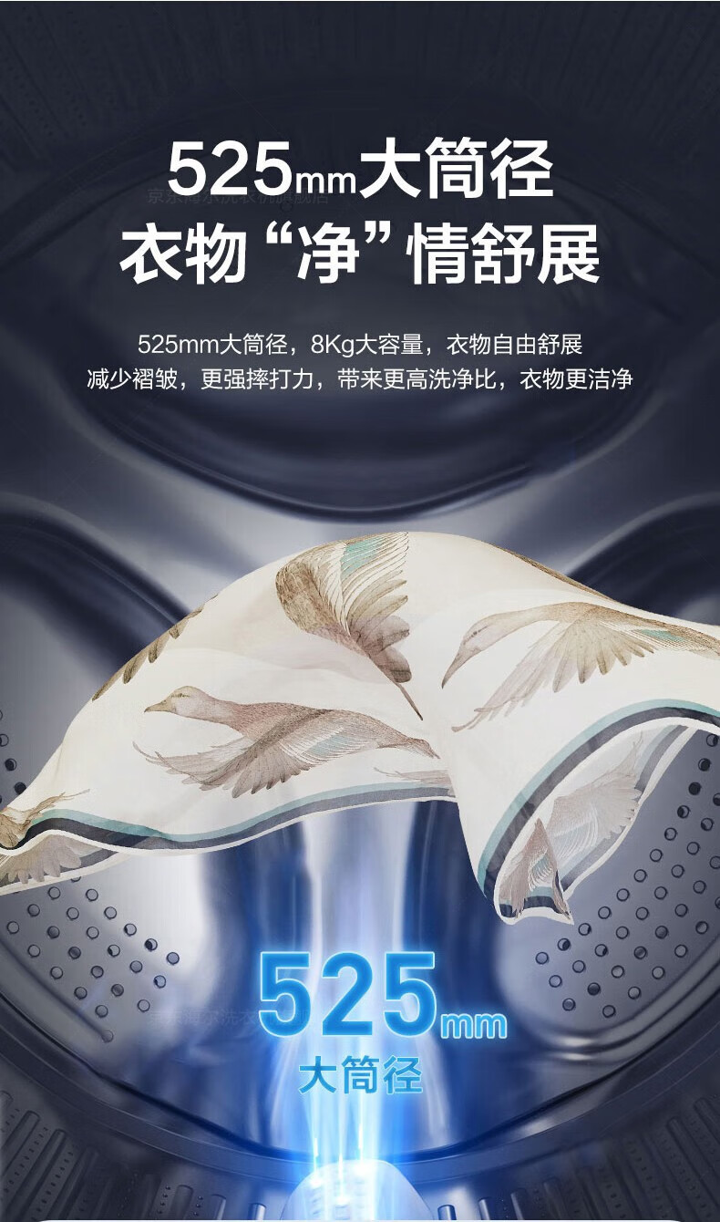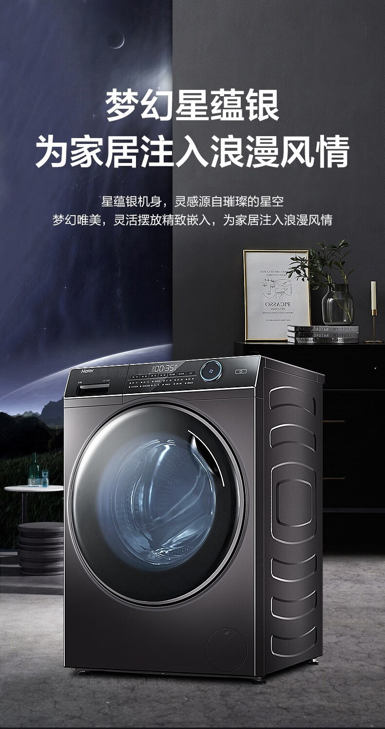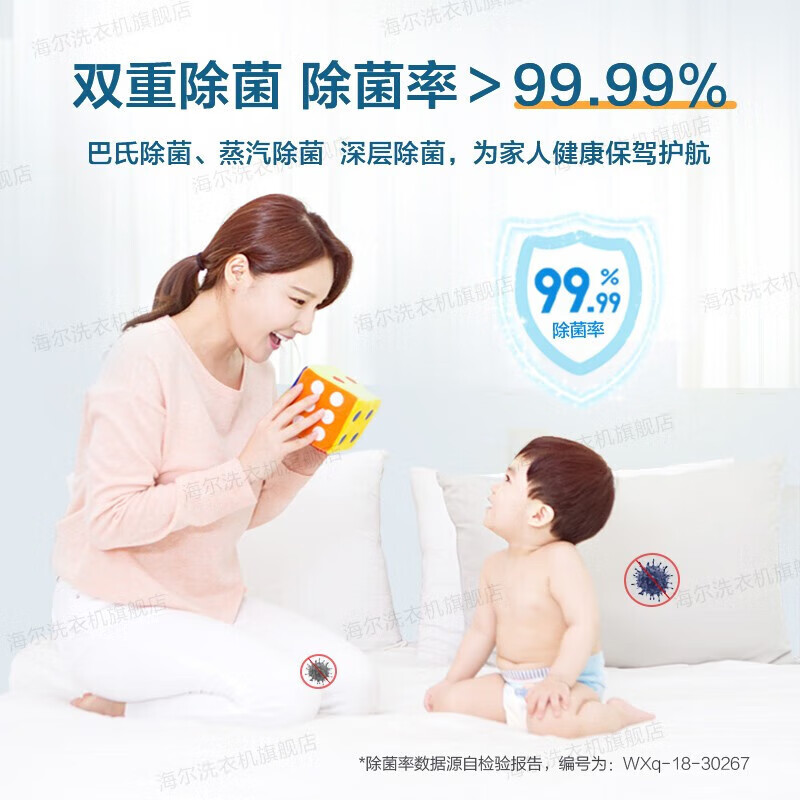 海尔(Haier)【行业超薄TOP】海尔8公斤超薄款滚筒洗衣机全自动家用小户型嵌入式变频一级节能大筒径除菌除螨 8公斤+405超薄+525大筒径+巴式除菌+羽绒洗