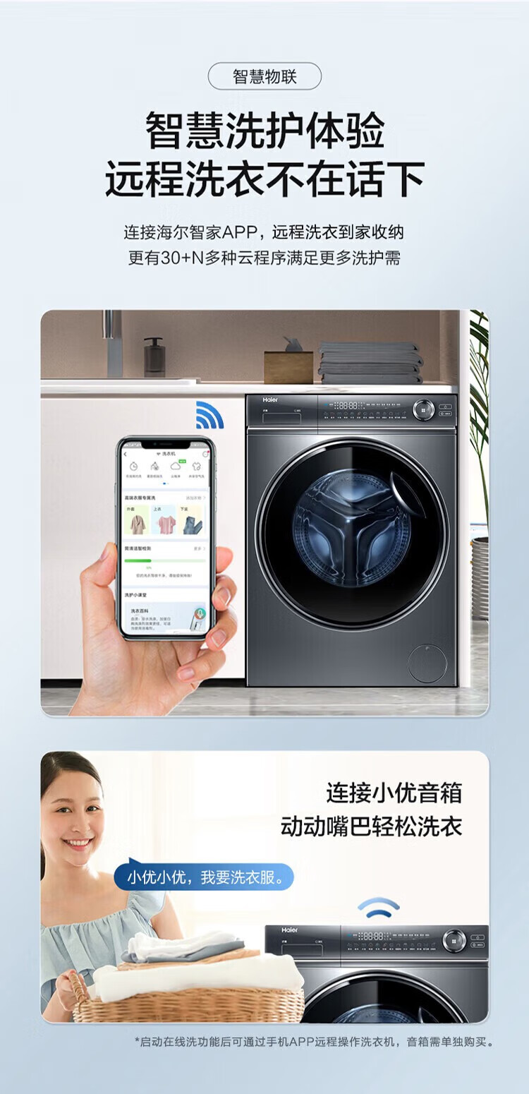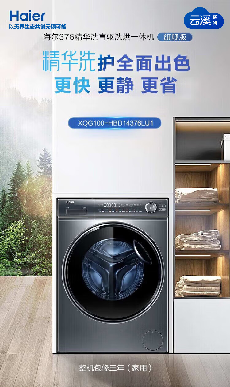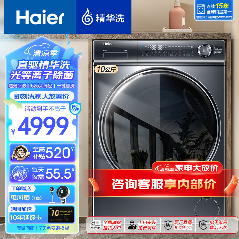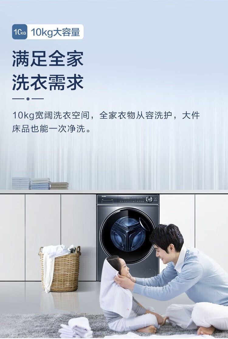 海尔(Haier)【376/368/98直驱精华洗系列】滚筒洗衣机全自动直驱变频超薄平嵌10公斤大容量智能投放以旧换新