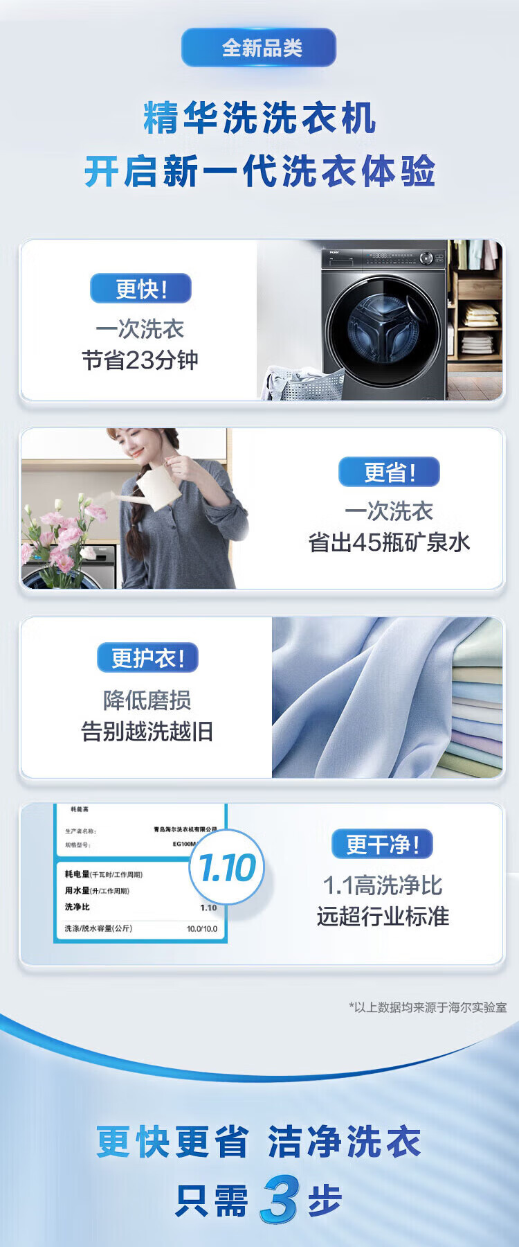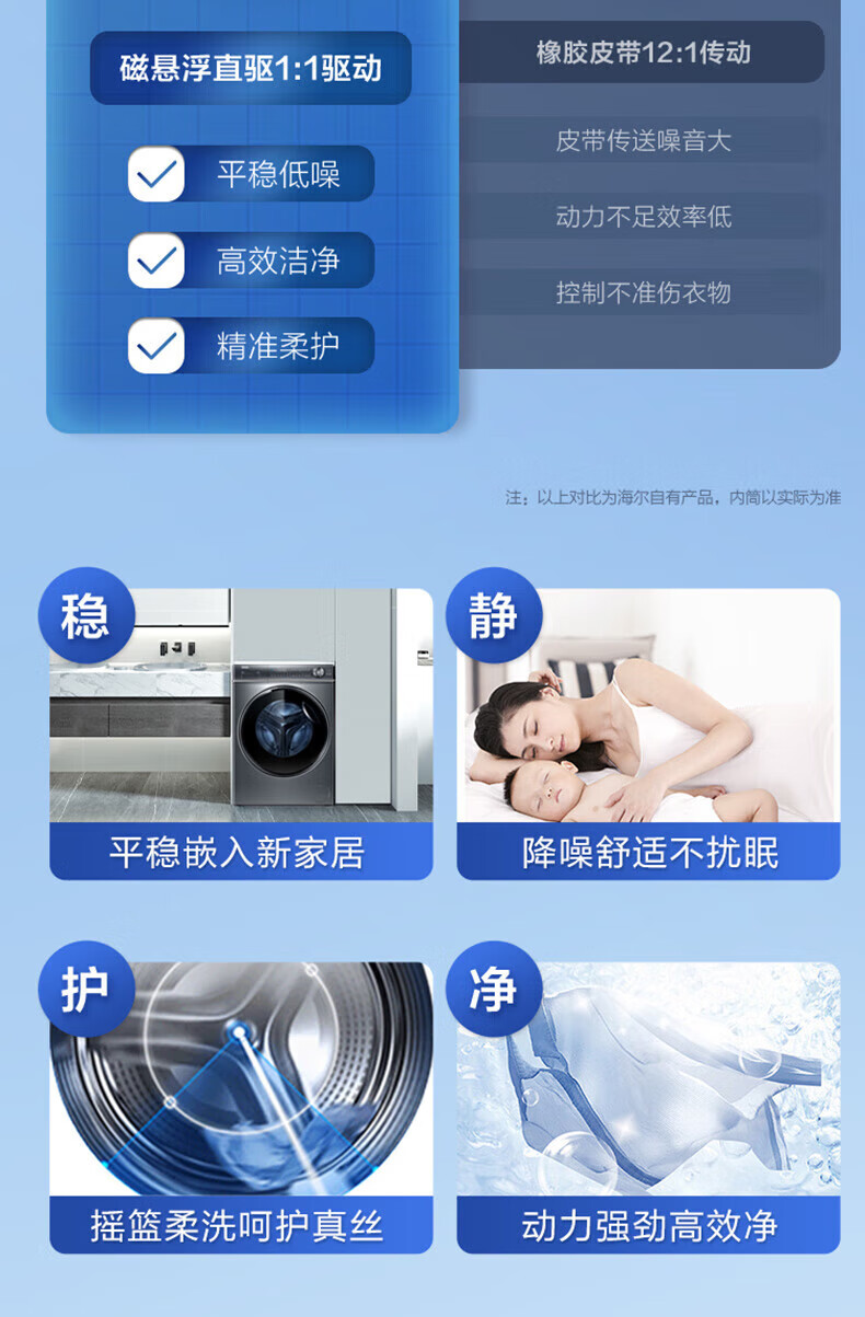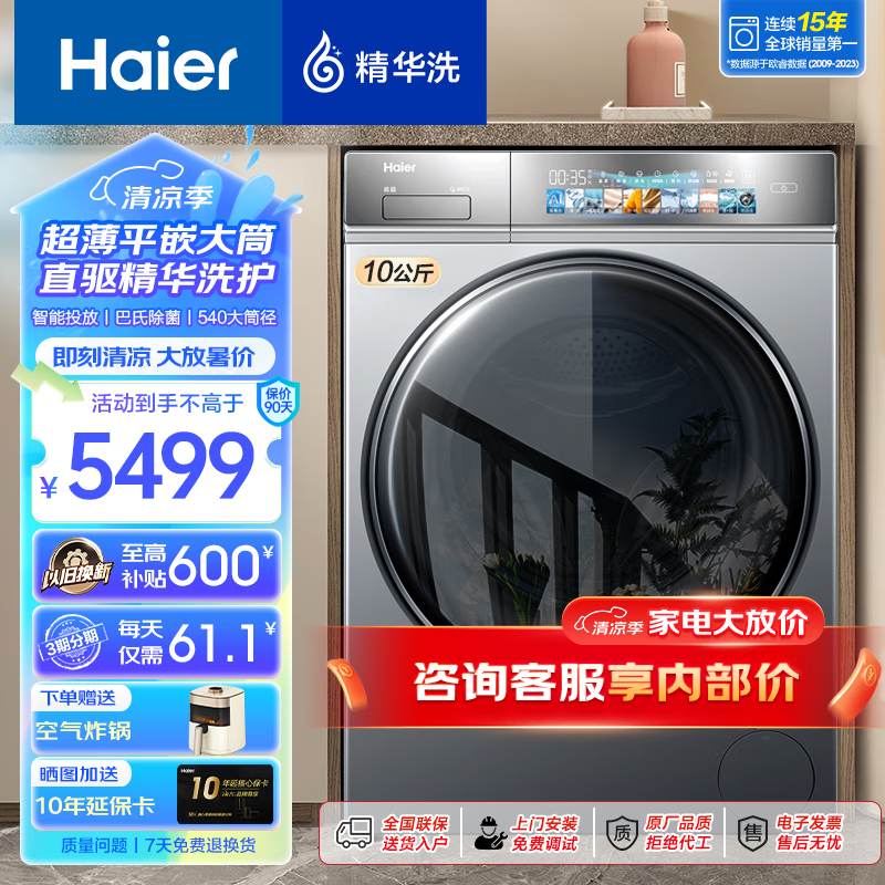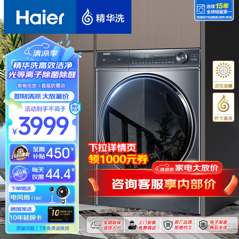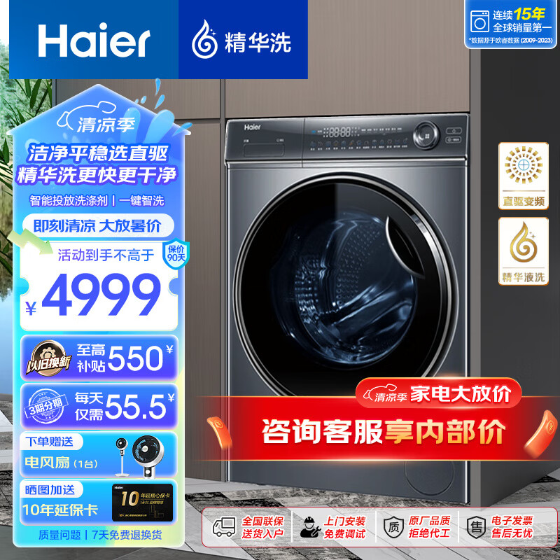 海尔(Haier)【376/368/98直驱精华洗系列】滚筒洗衣机全自动直驱变频超薄平嵌10公斤大容量智能投放以旧换新