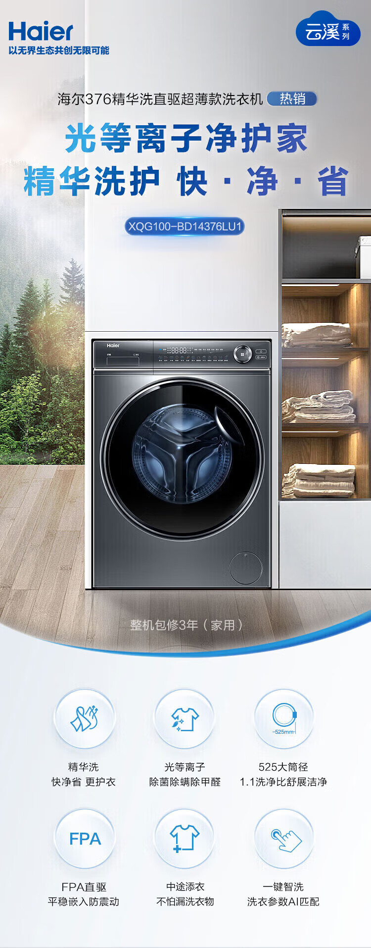 纤美376超薄直驱洗烘+525大筒+蒸汽除菌+智投