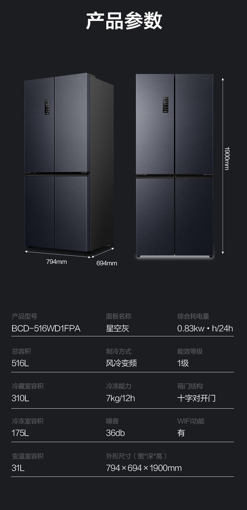 宽794mm;深694mm;高1900mm